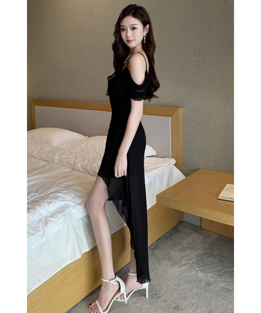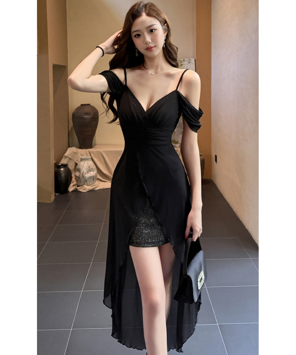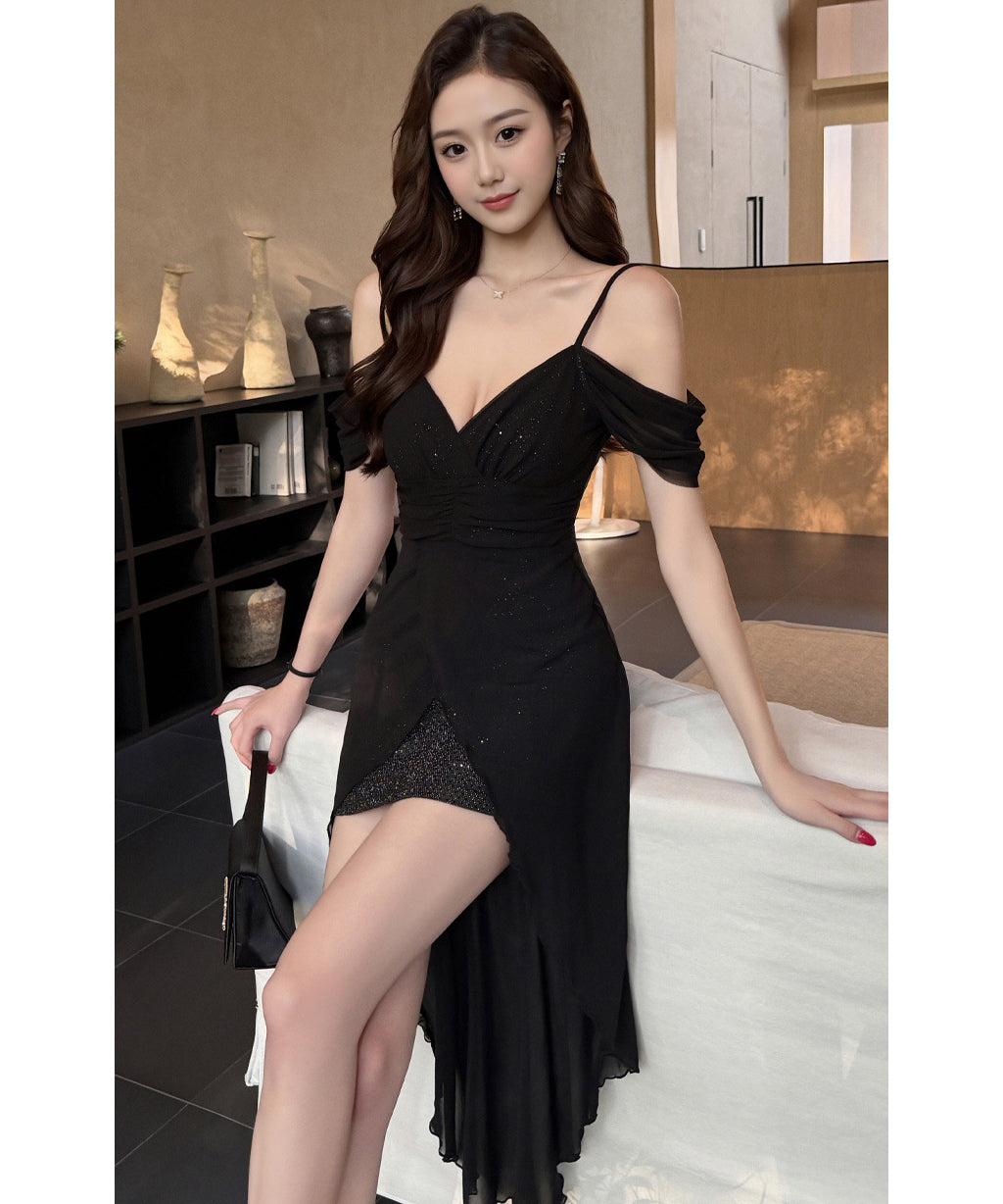 ミニドレス キャバドレス セクシー メッシュ キャミワンピ スリット入り スパンコール 前ミニ クラブ JC2-JX5802