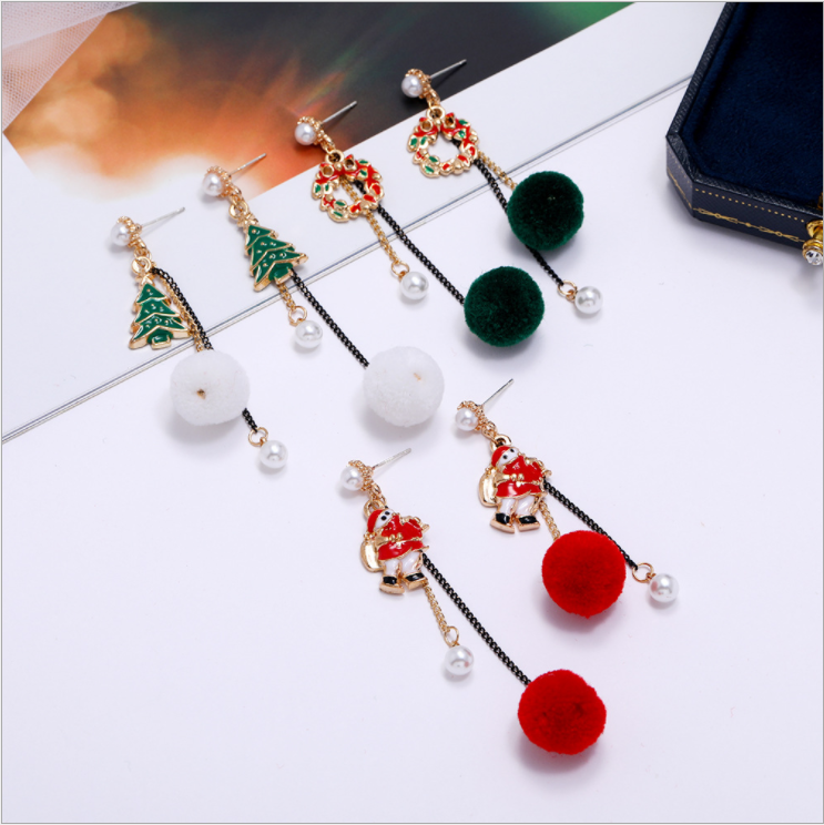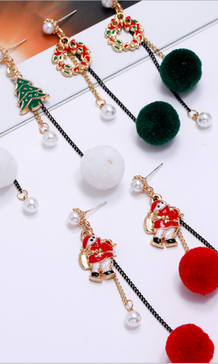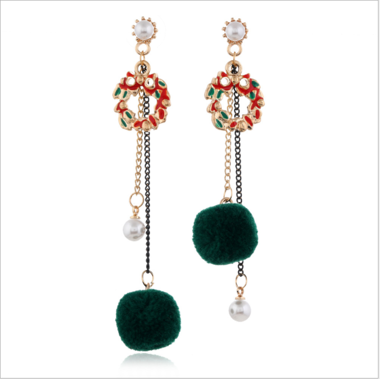 クリスマスファーボールイヤリングYN3019