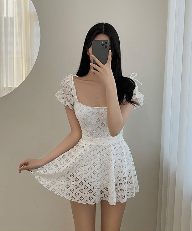 【2点セット】水着ビキニワンピースAライン体型カバー露出控え着痩せ気質フラワーカワセクシー XH7-DP-A21807