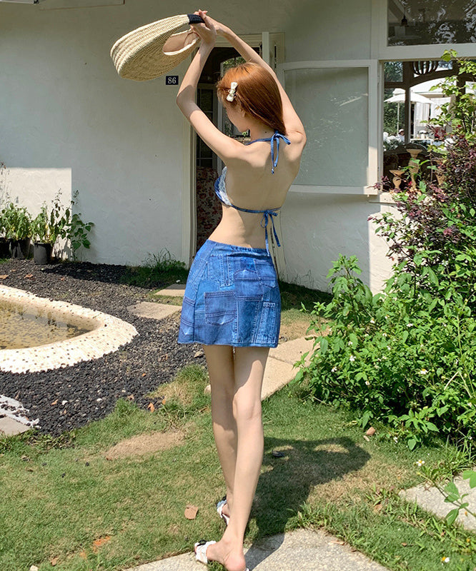 【3点セット】デニムビキニ セクシー 超人気 ホルターネック ストレッチ アップバンド XH7-DP- A31364