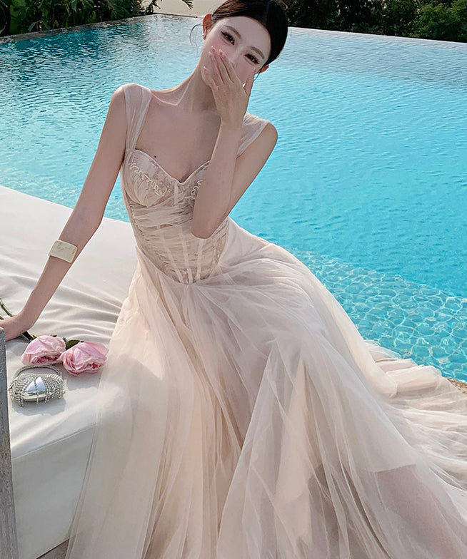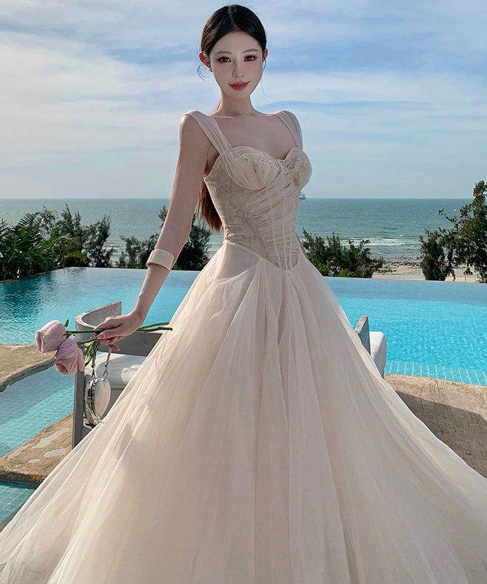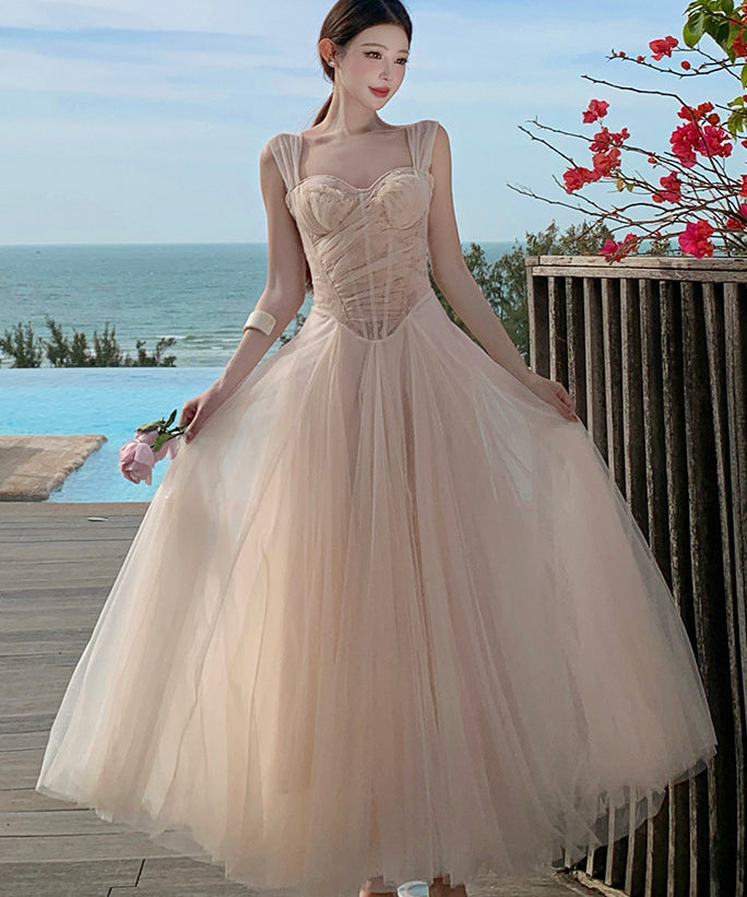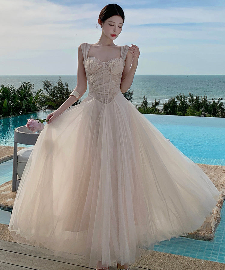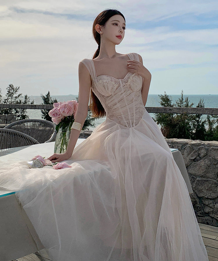 ロングドレス キャバドレス セクシー ガーリー フレンチスタイル チュール コルセット風 レース 刺繍 キャミソール フリル JC2-XHY915239