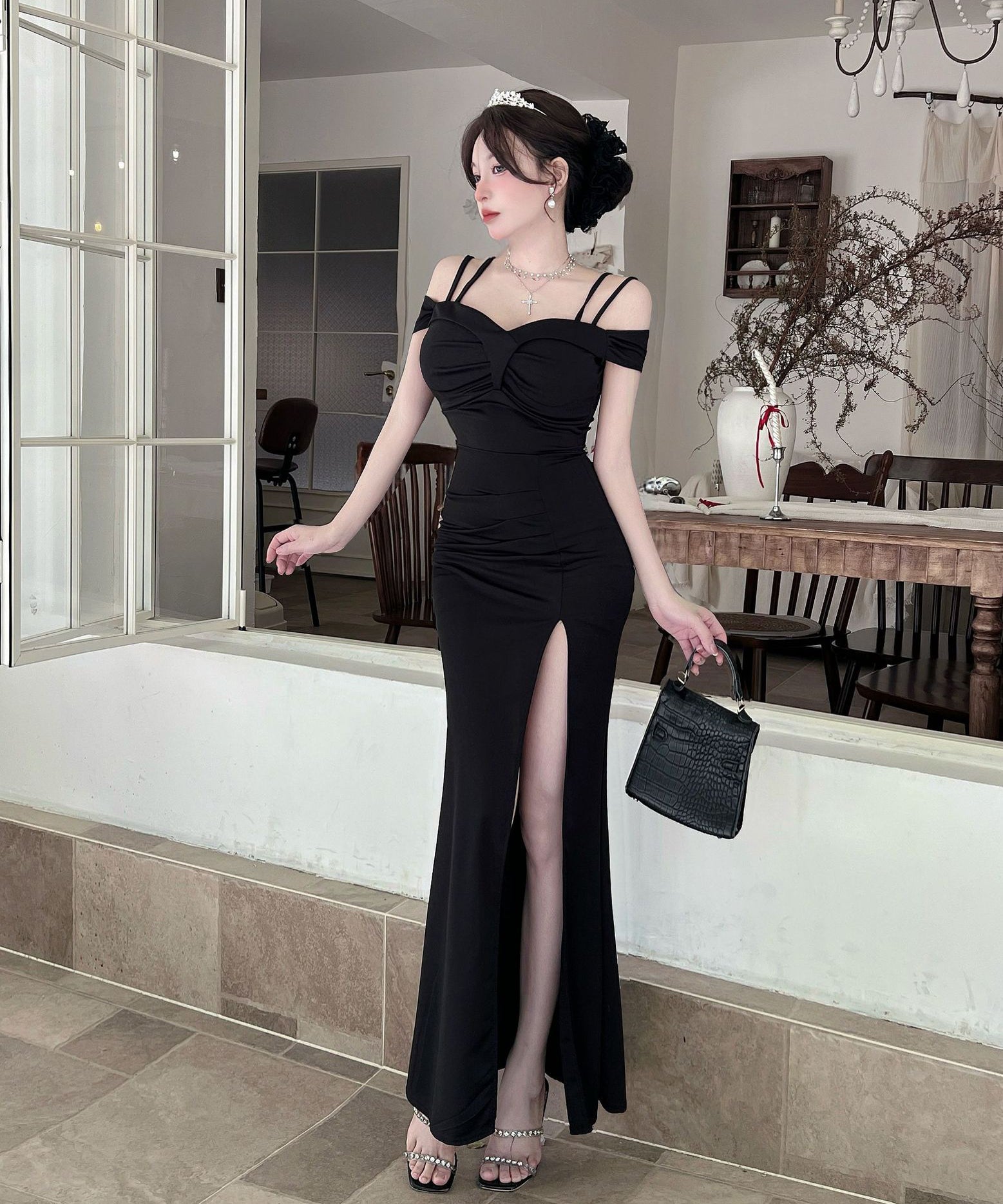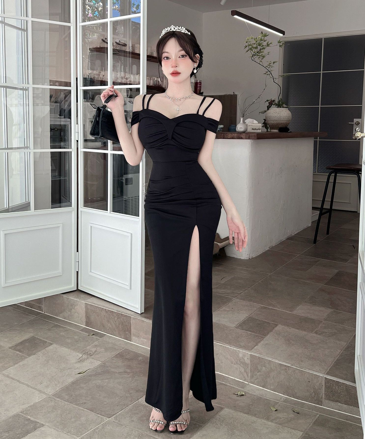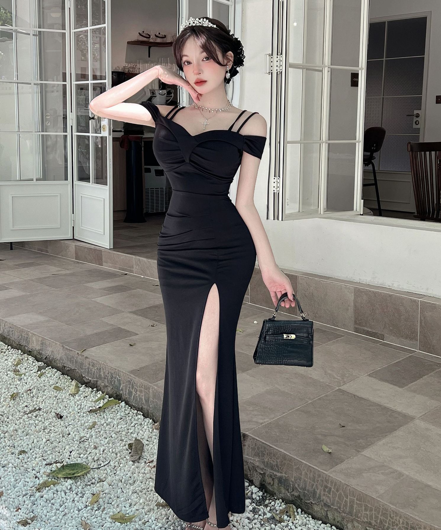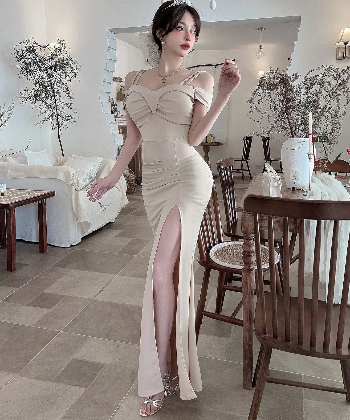 ロングドレス キャバドレス セクシー ディープネック キャミワンピ スリット エレガント 脚長効果 パーティー JC2-DD6387