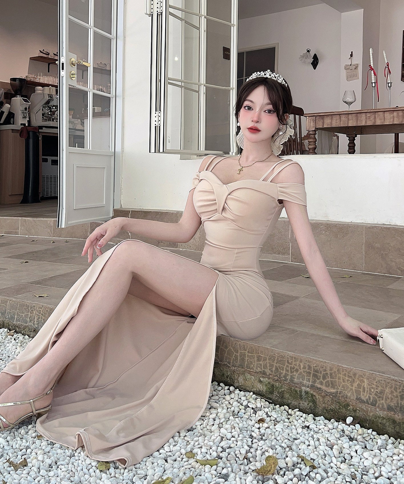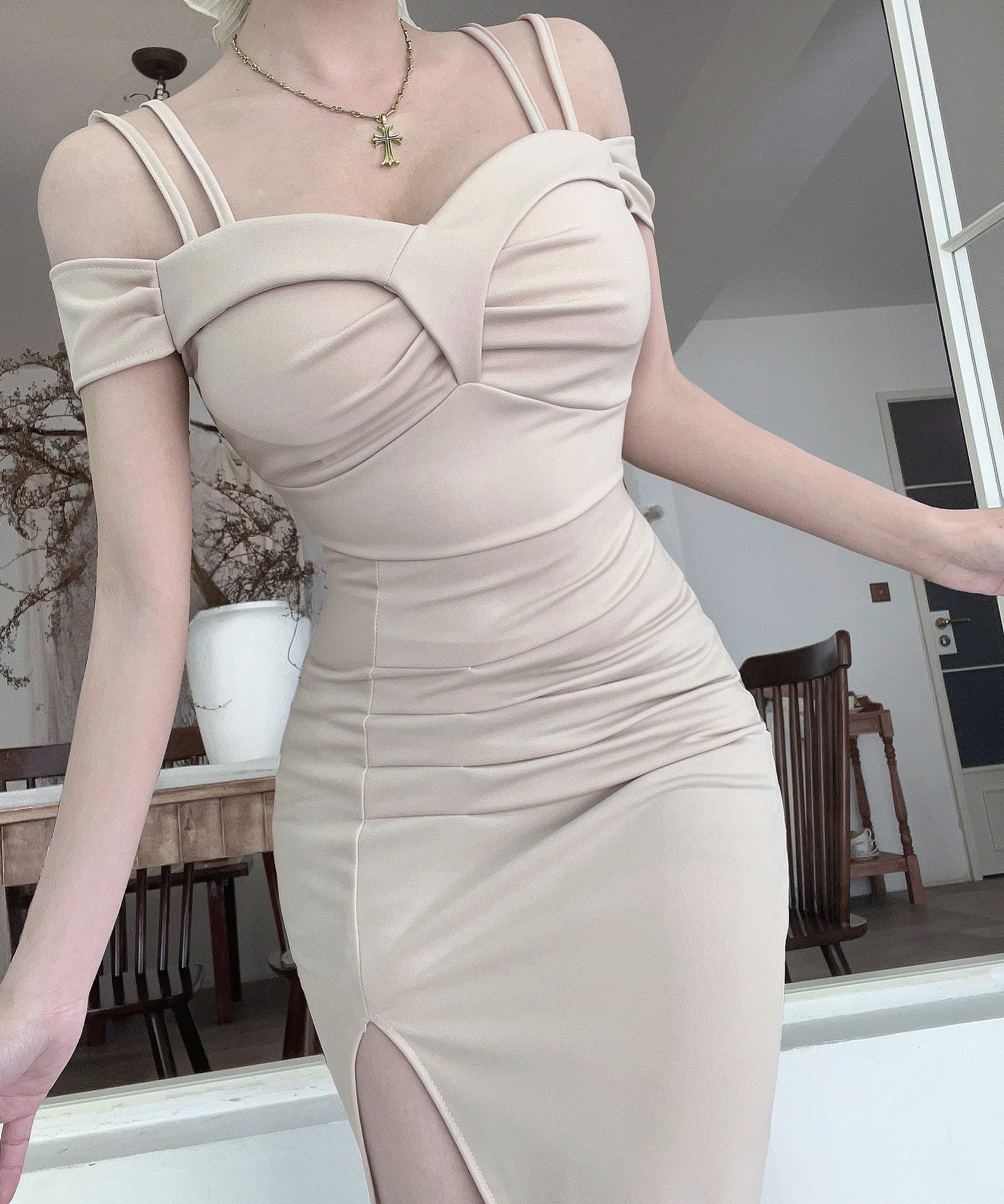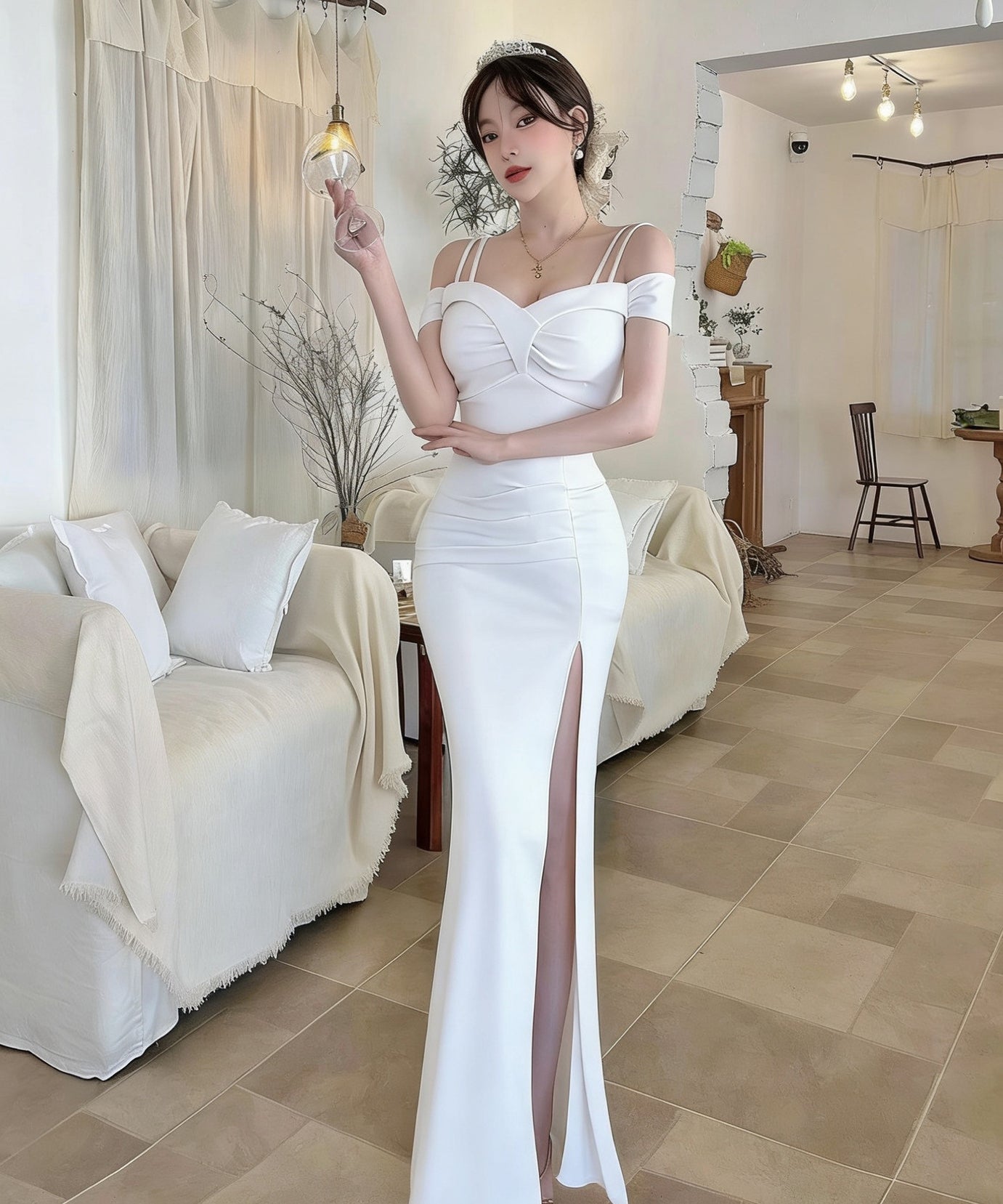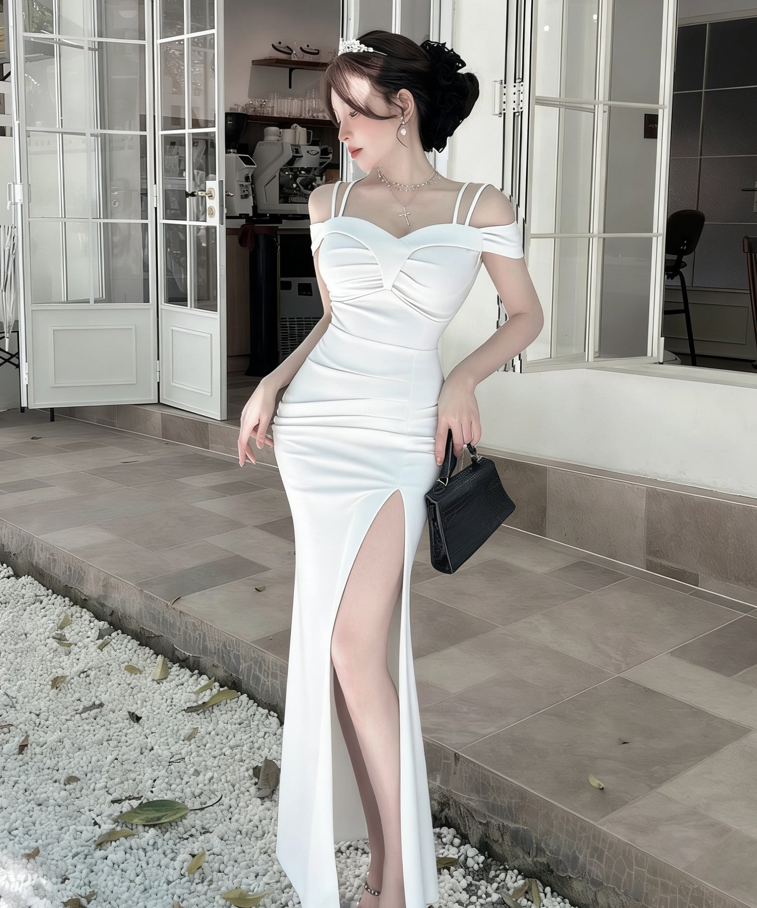 ロングドレス キャバドレス セクシー ディープネック キャミワンピ スリット エレガント 脚長効果 パーティー JC2-DD6387