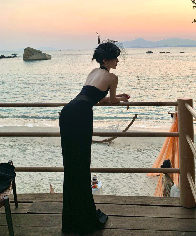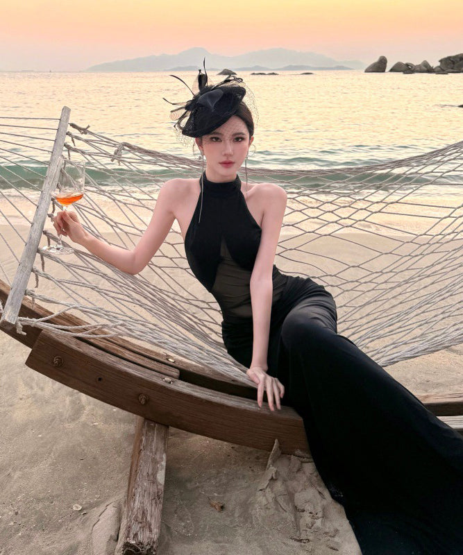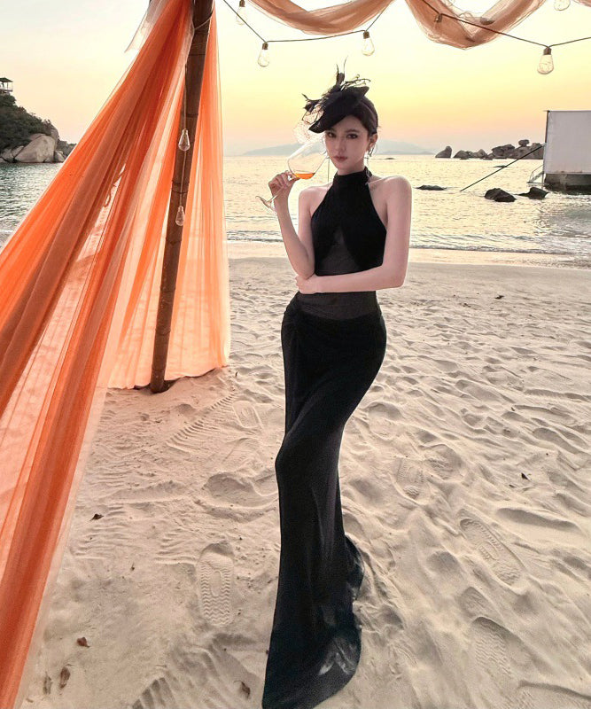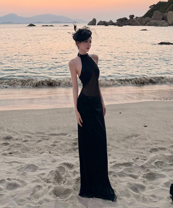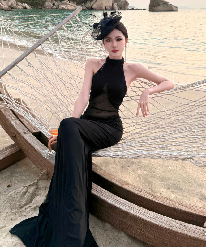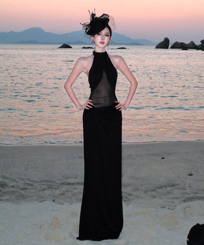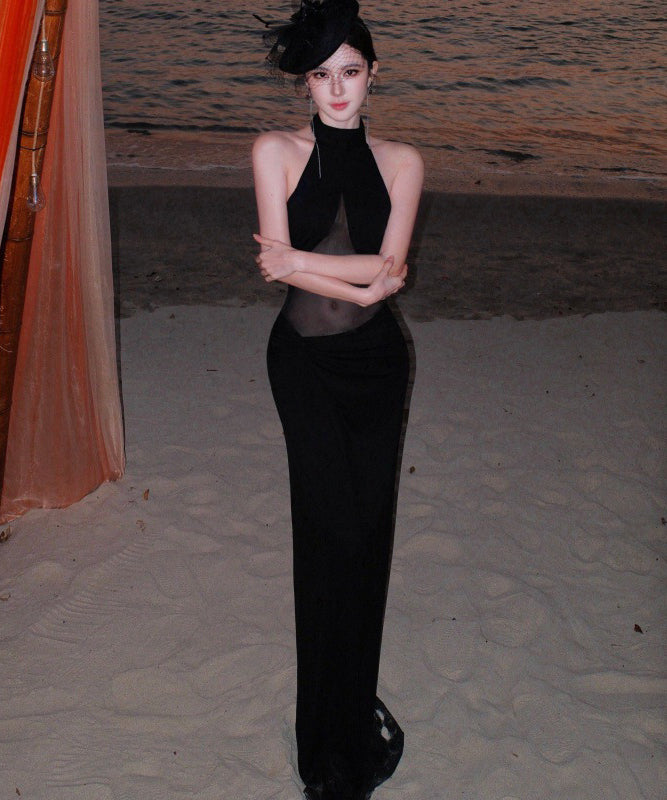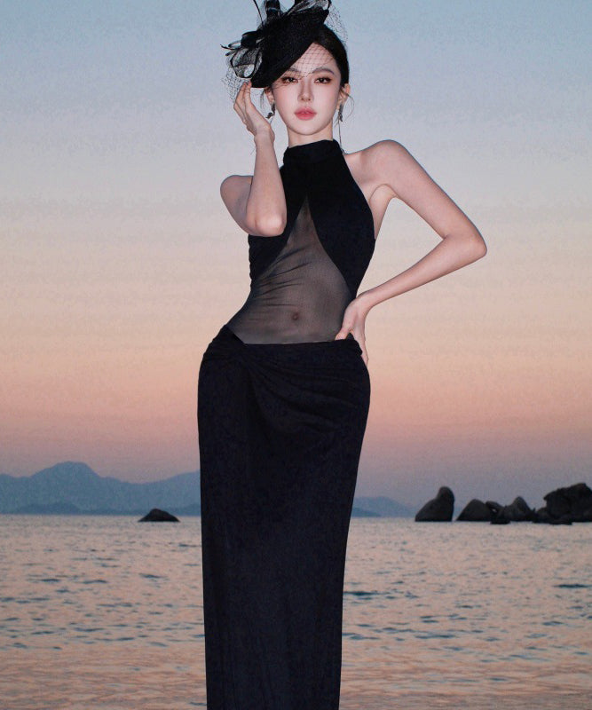 ロングドレス キャバドレス セクシー ホルターネック ボディコン チュール 細見え シースルー パーティー JC2-CD6-157-83220550