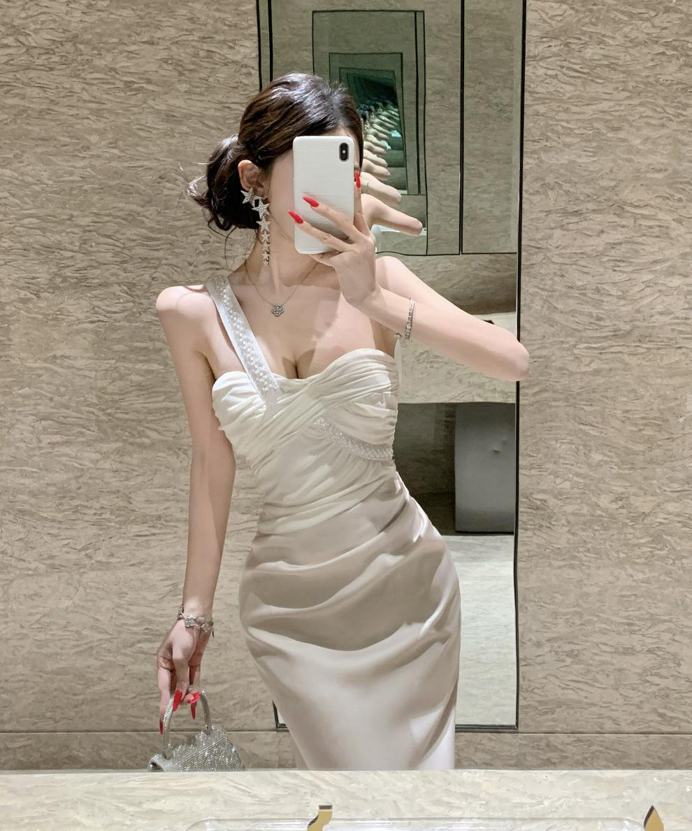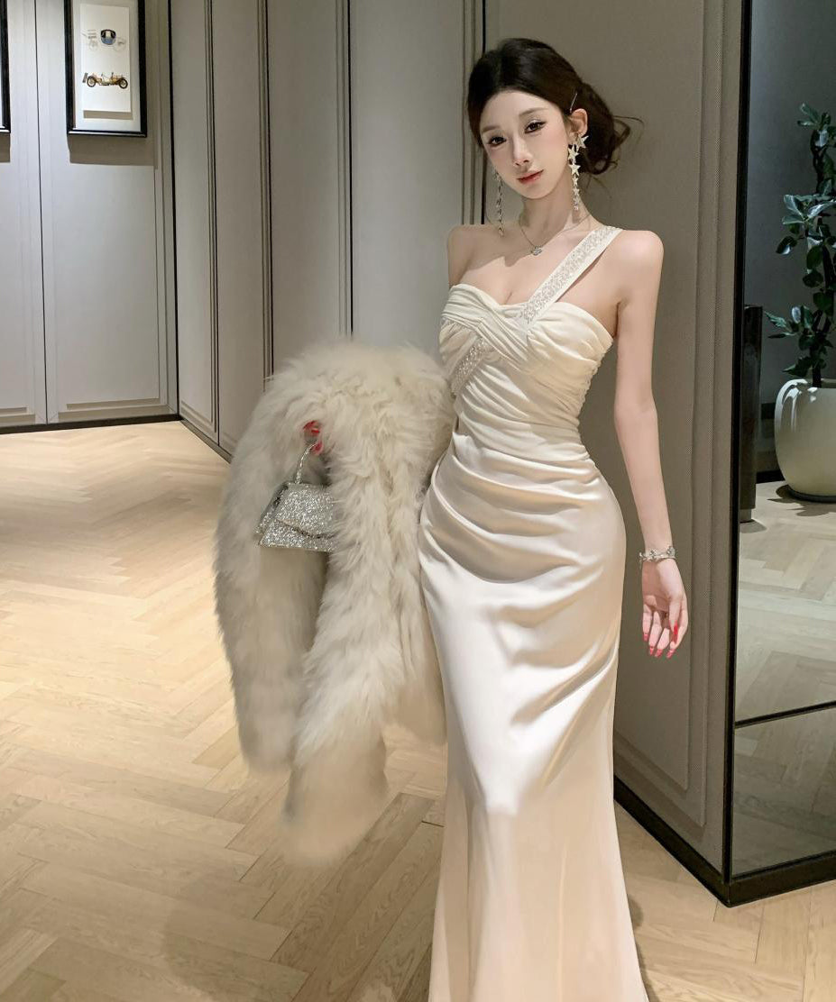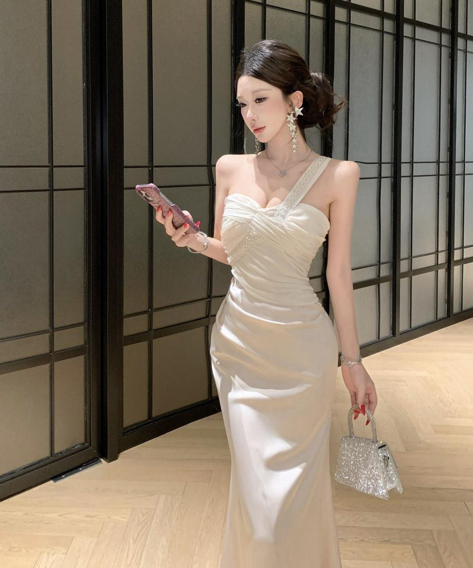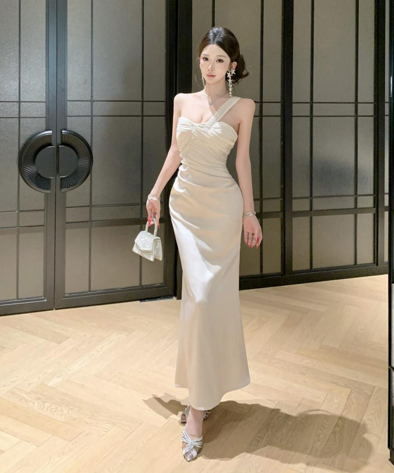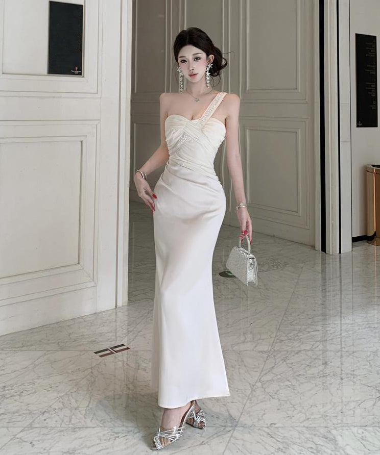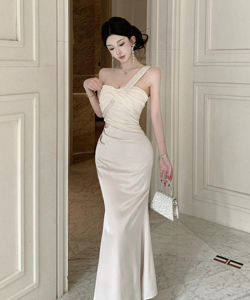 ロングドレス キャバドレス セクシー 上品 ワンショルダー チェーンデザイン 肩見せ ドレープ パーティー JC2-ZED888743DXH238A
