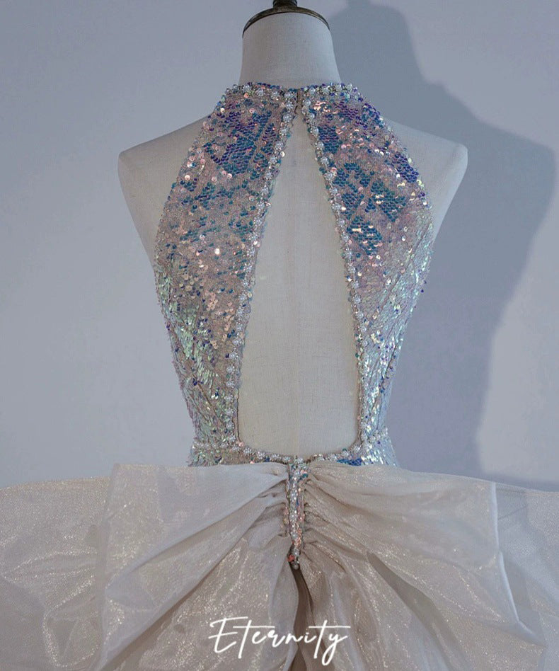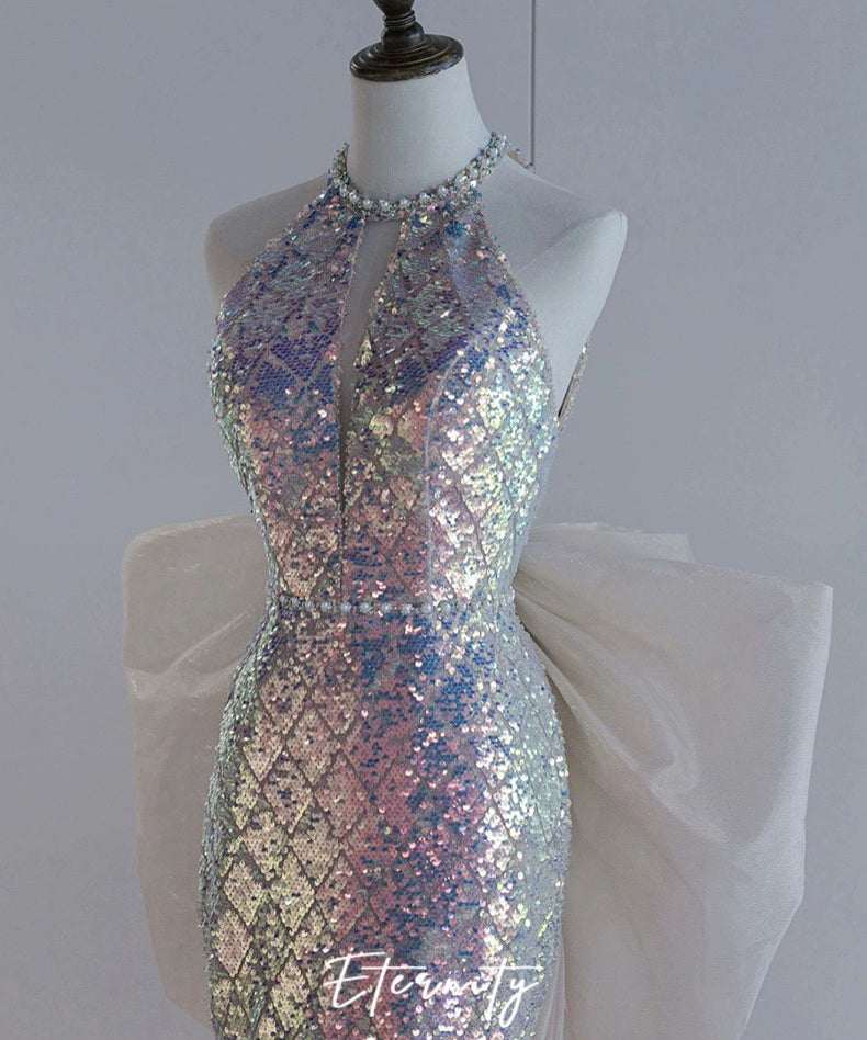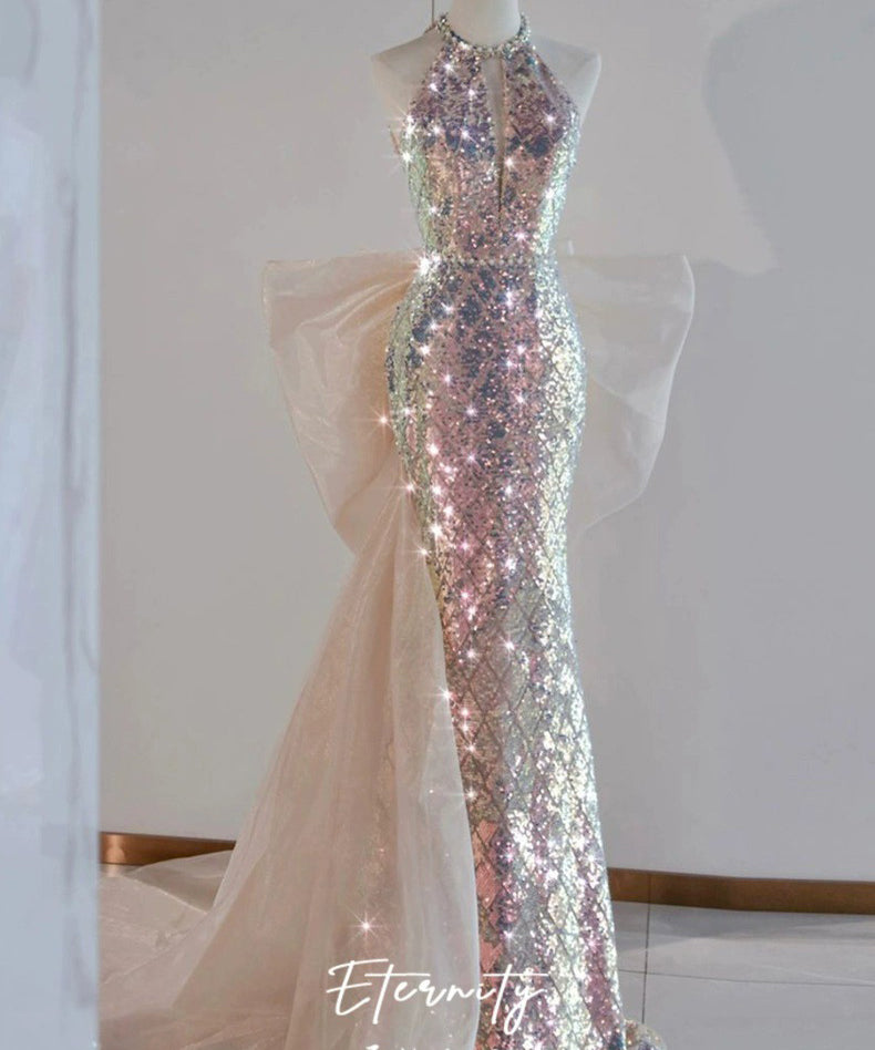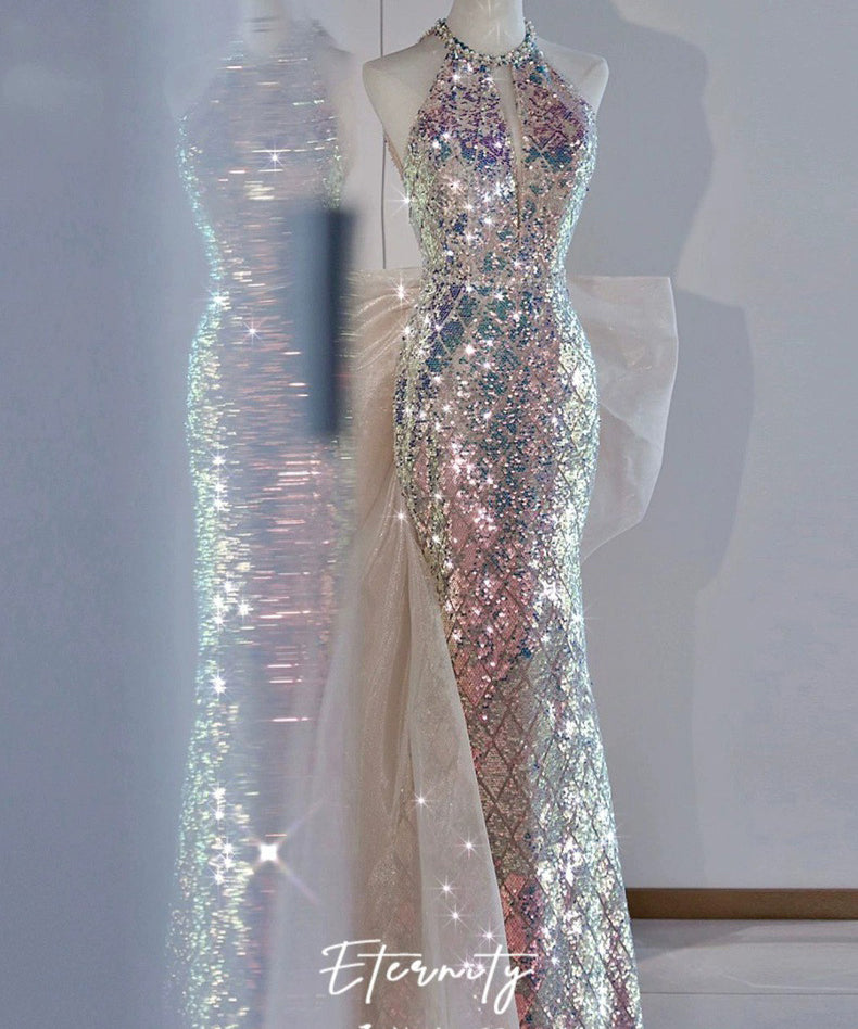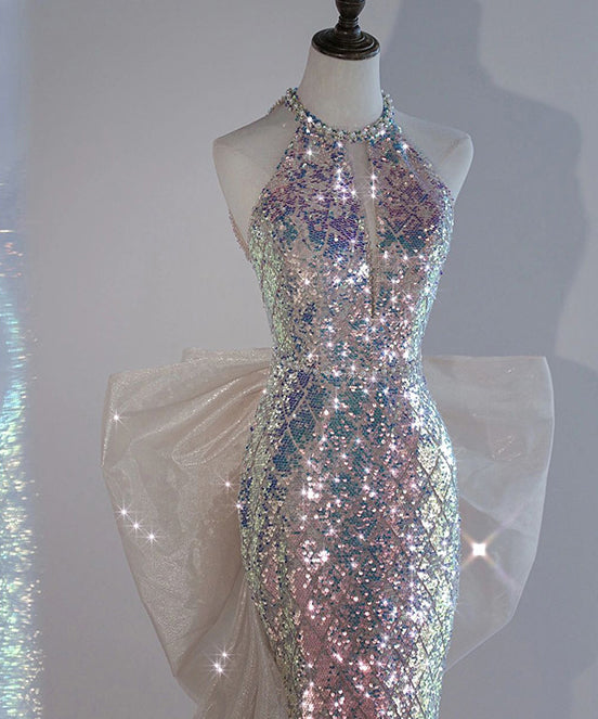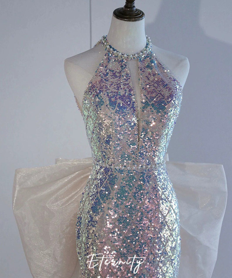 ロングドレス キャバドレス パーティードレス ロングドレス ハルターネック キラキラ スパンコール マーメイドライン ゴージャス 誕生日 結婚式 披露宴 LW2-MJR414