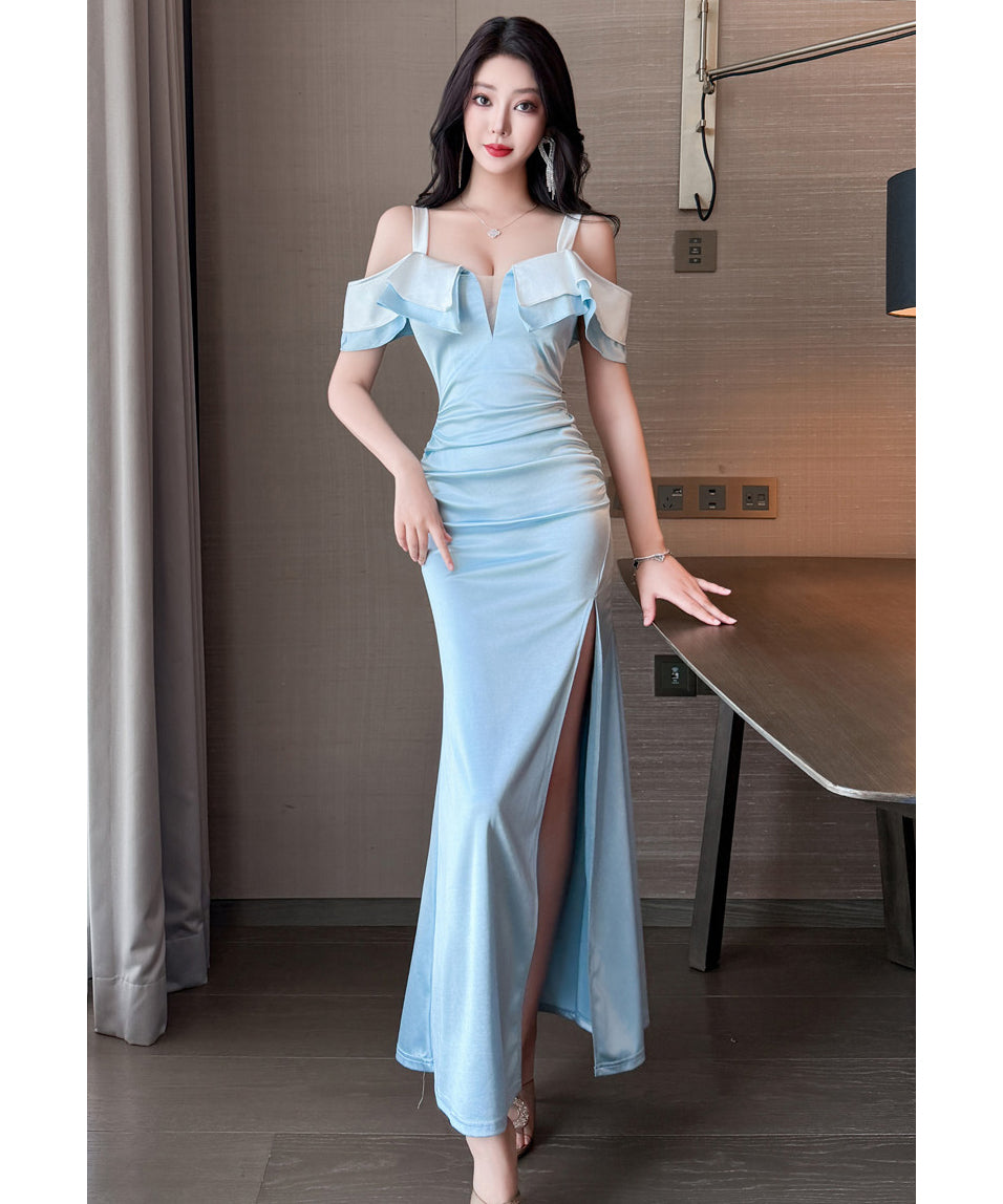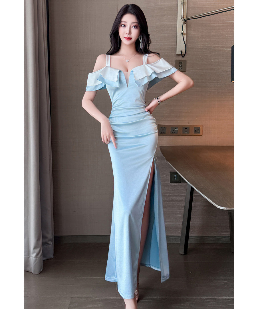 【2色】ロングドレス キャバドレス セクシー デコルテ魅せ スリット入り フォーマルドレス JC2-JX5825