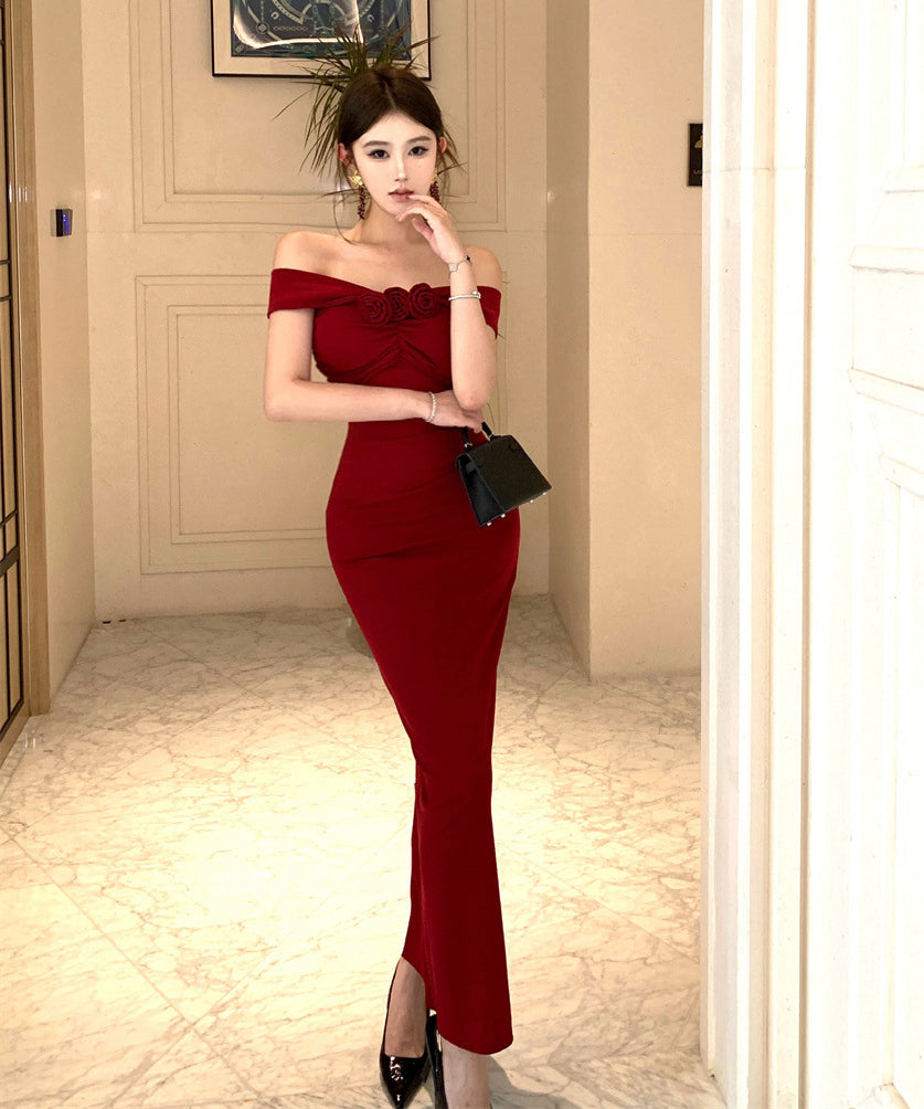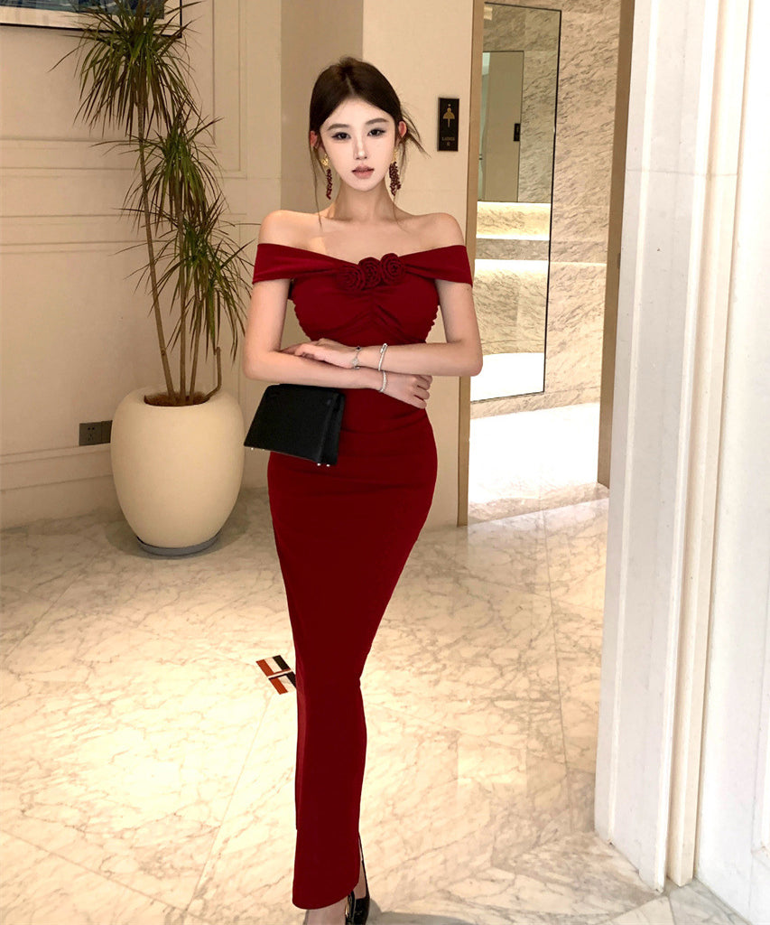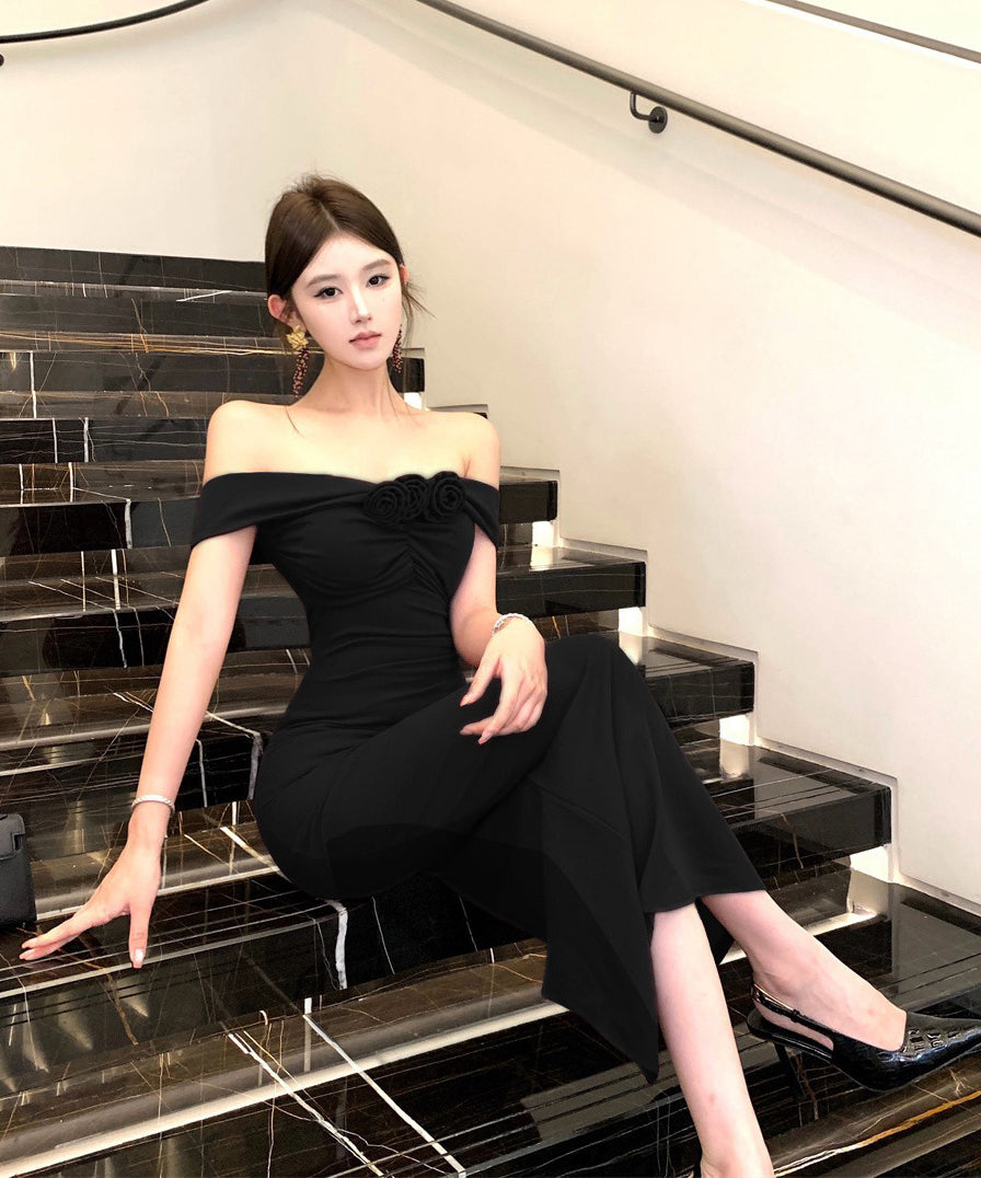 【2色】ロングドレス キャバドレス セクシー フレンチ オフショルダー 細見え エレガント フォーマルドレス JC2-WDS5560