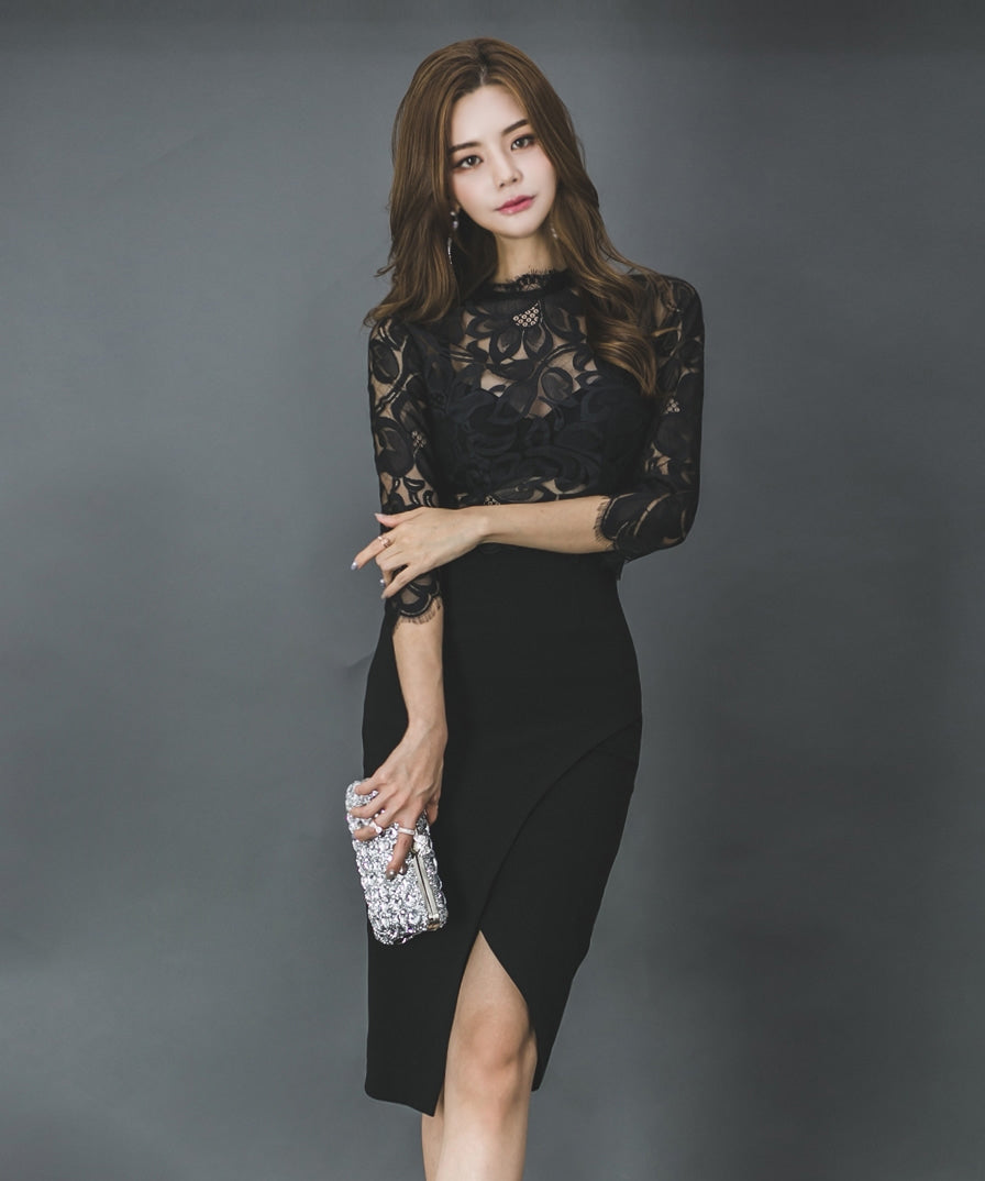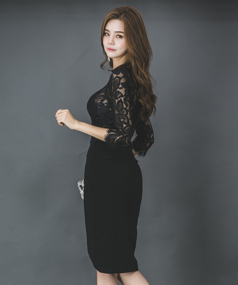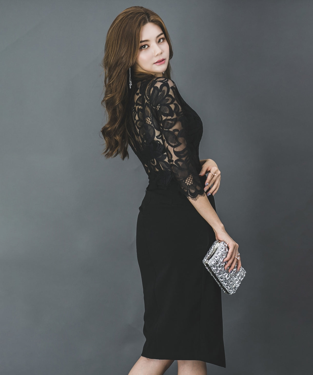 ひざ丈ドレス ミニドレス レース 透け感 かわいい 新作 MY2-ZED889041BM131