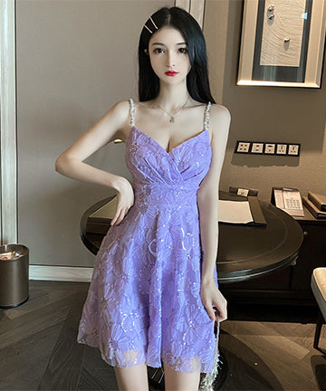 【2色】ゴージャス 可愛い パーティードレス キラキラ 肌見せ XH2-MLS7069