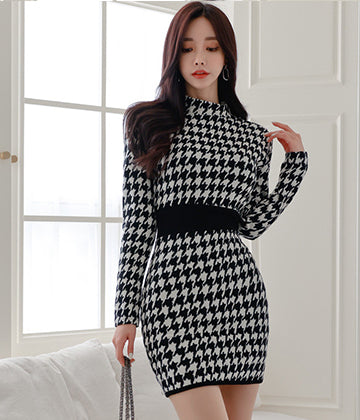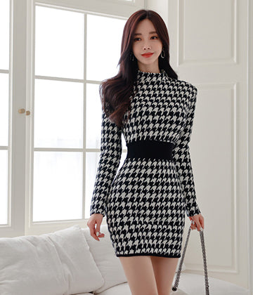 秋新作 千鳥柄 ミニドレス かわいい ゴージャス 高級感 LT2-ZED886622BH506