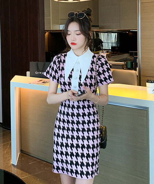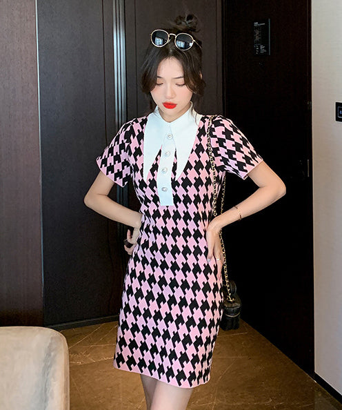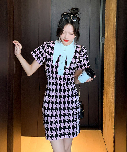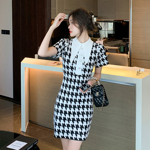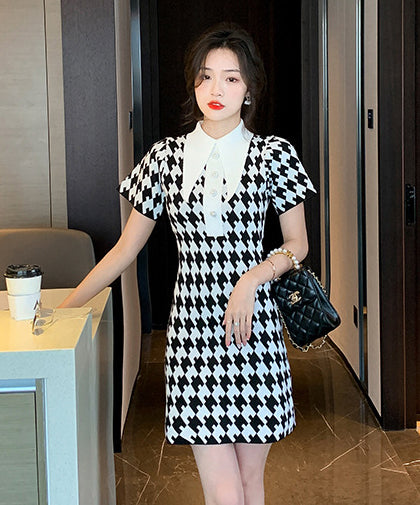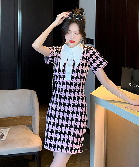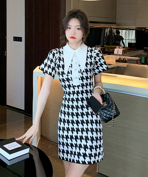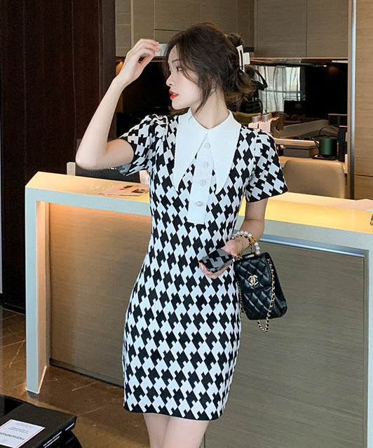 【2色】ミニドレス キャバドレス 千鳥格子 かわいい 新 作ゴージャス MY2-SX9109