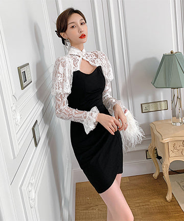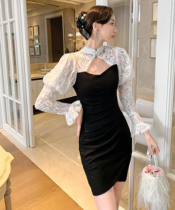 おしゃれ ミニドレス 不規則 レース 高級感 パフスリープ セクシー XH2-JY5275