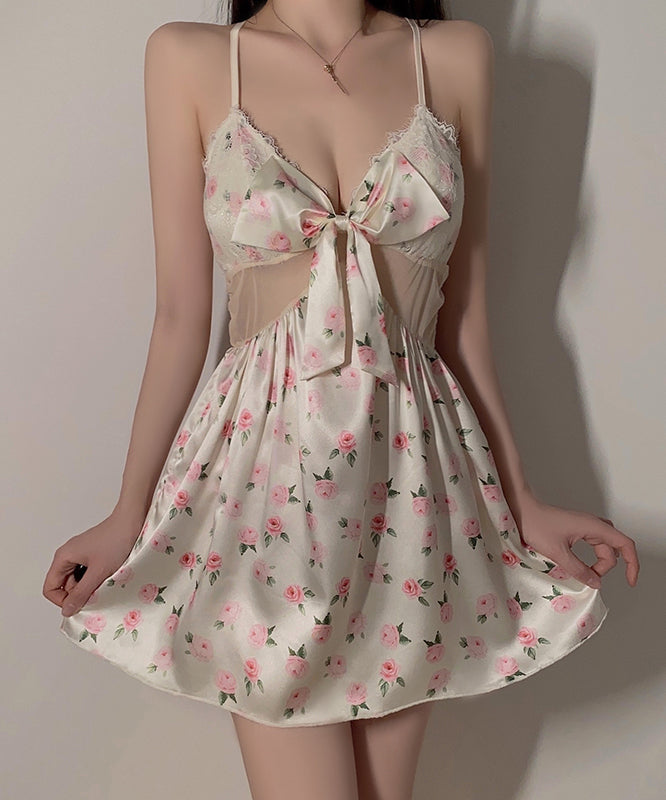 かわいい 少女 花柄 セクシー 蝶結び パジャマ ルームウェア 透け感 YH8-GR3904