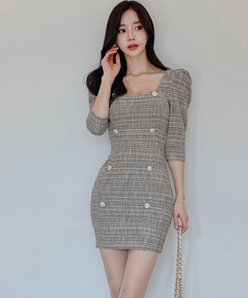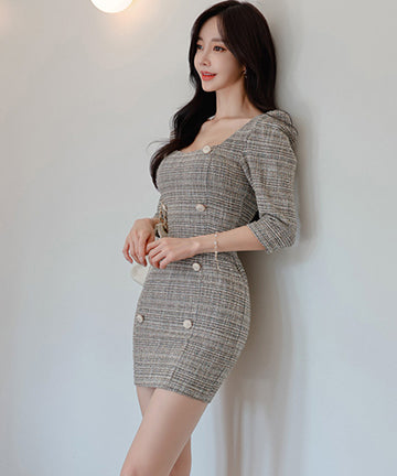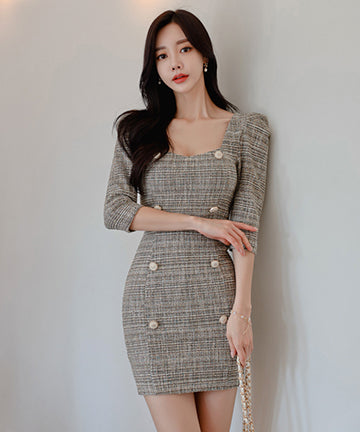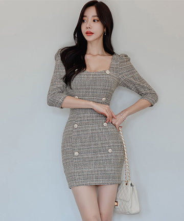 ひざ丈ドレス ミニドレス ゴージャス チェック柄 淑女 LT2-ZED886613BH506
