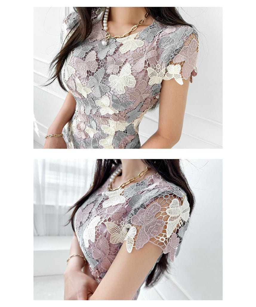 ひざ丈ドレス レース パーティードレス 刺繡 蝶 かわいい 高品質 MY2-ZED880888E