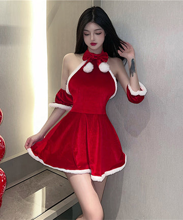 ふわふわ santababy クリスマ ホルターネック セクシー コスプレ かわいい サンタ XH2-SBYX0905