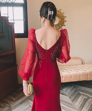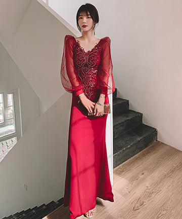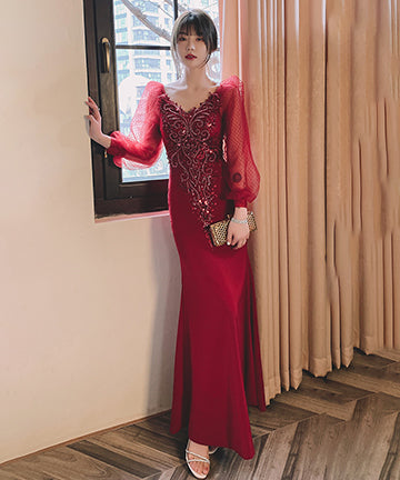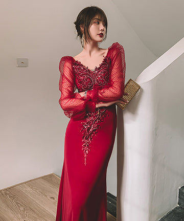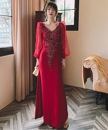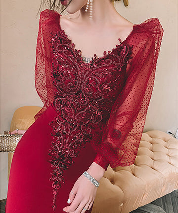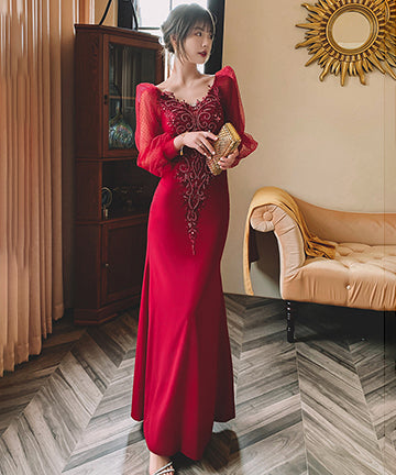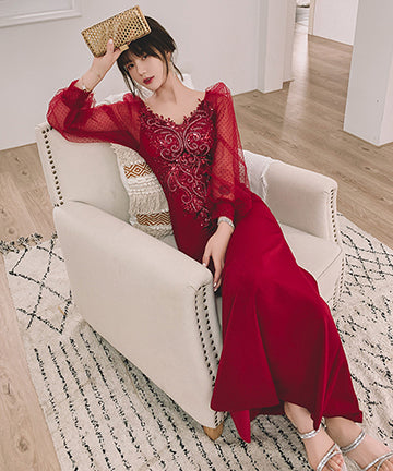 エレガント Ⅴネック 谷間魅せ 刺繡 高級感 宴会 演奏会 ロングドレス 淑女 XH2-YFTK5.6