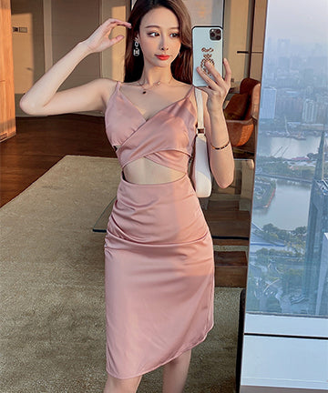 エレガント 透かし彫り セクシー 高級感 谷間魅せ パーティードレス XH2-LQE8123MR418