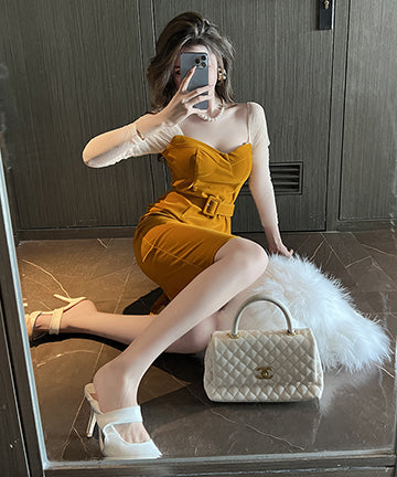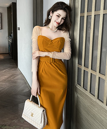 エレガント 高品質 パッチワーク 同伴 二次会 宴会 セクシー スクエアネック XH2-JY10203