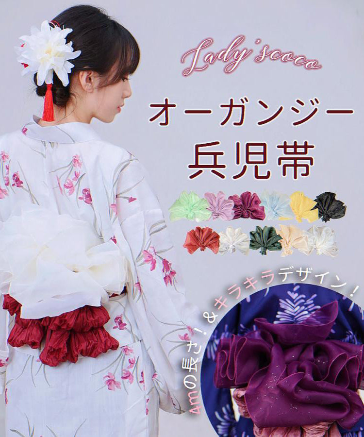 繊細で透明感のあるオーガンジー素材を使用した兵児帯(へこ帯)。