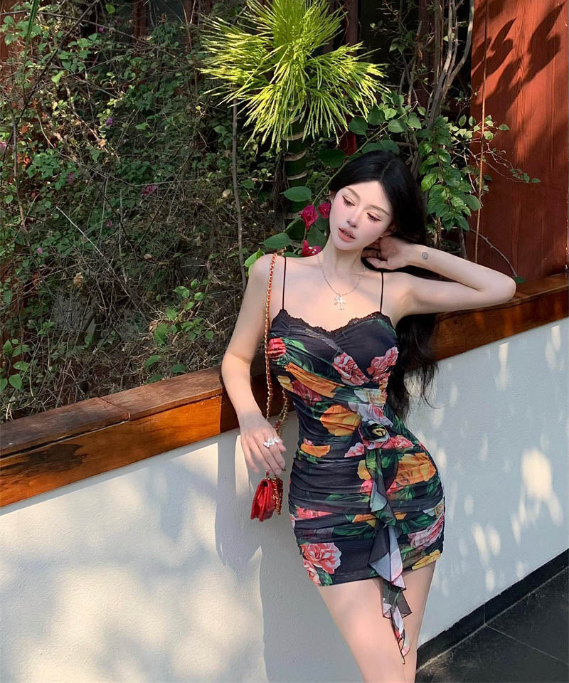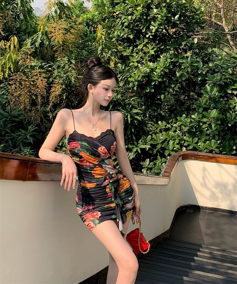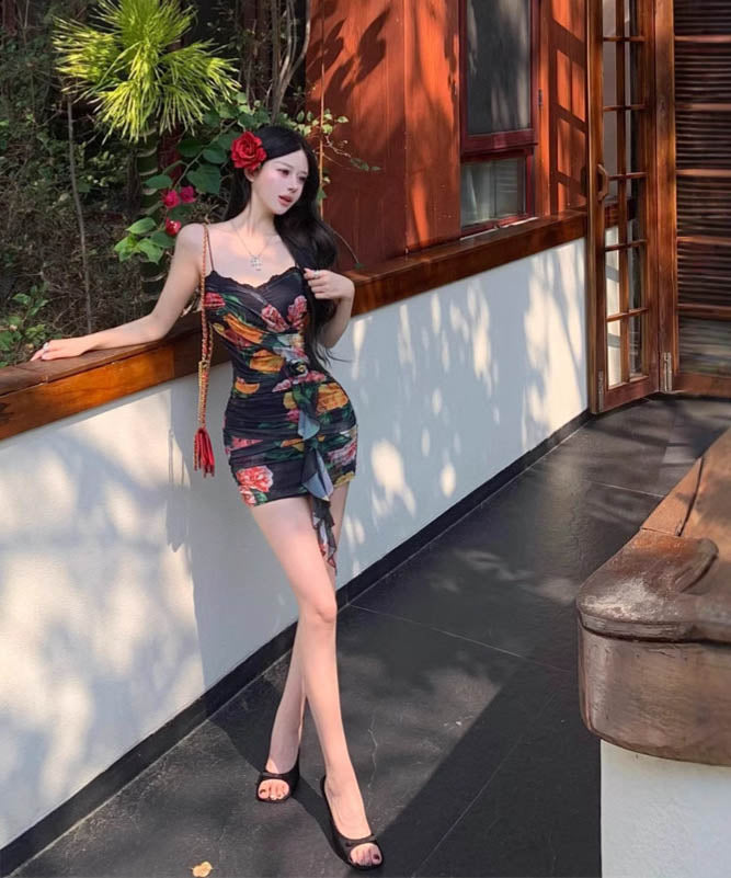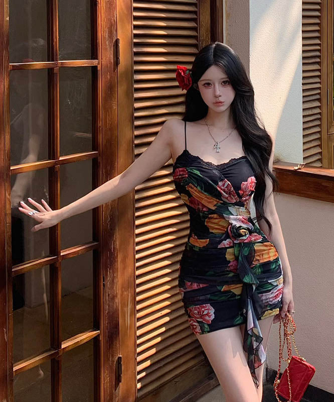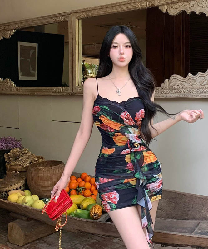 キャバドレスミニドレスキャミワンピ花柄セクシー指名チュール非対称フリルレース肌見せ WQ2-CD5-109-81690480