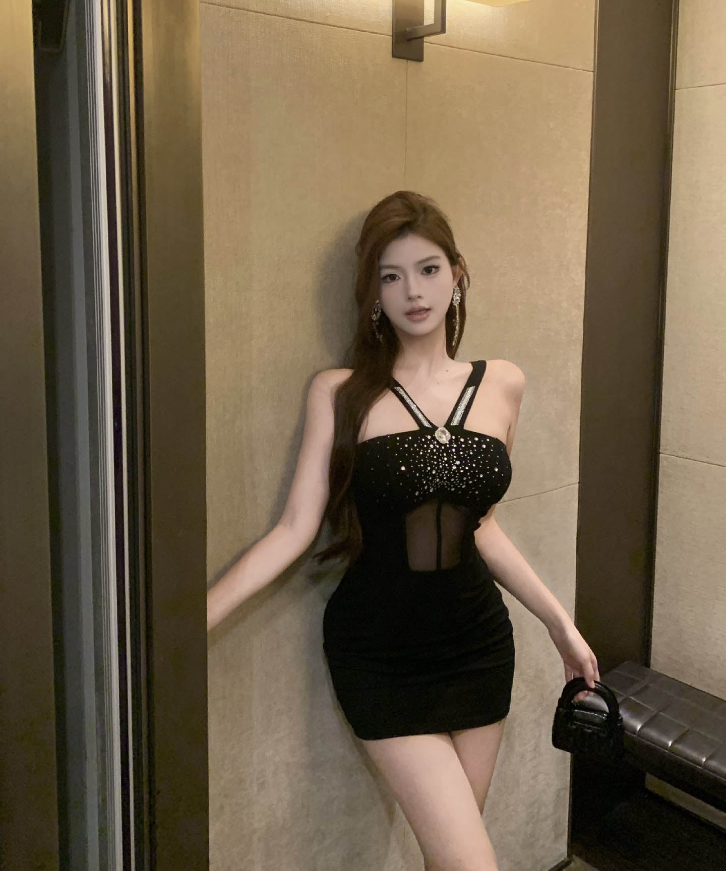 キャバドレスミニドレスホルターネックチュール谷間見せセクシーナイトクラブパーティーキャバクラキラキラ WQ2-DD4462