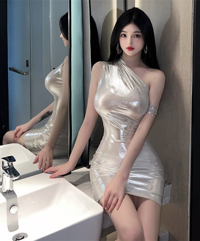 キャバドレス セクシー ワンショルダー シルバー キャバクラ XH2-LQE1122BF05