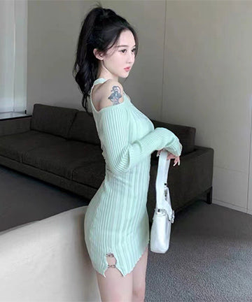 キャバドレス ニットワンピース 秋新作 セクシー 姉 透かし彫り XH2-LQE902
