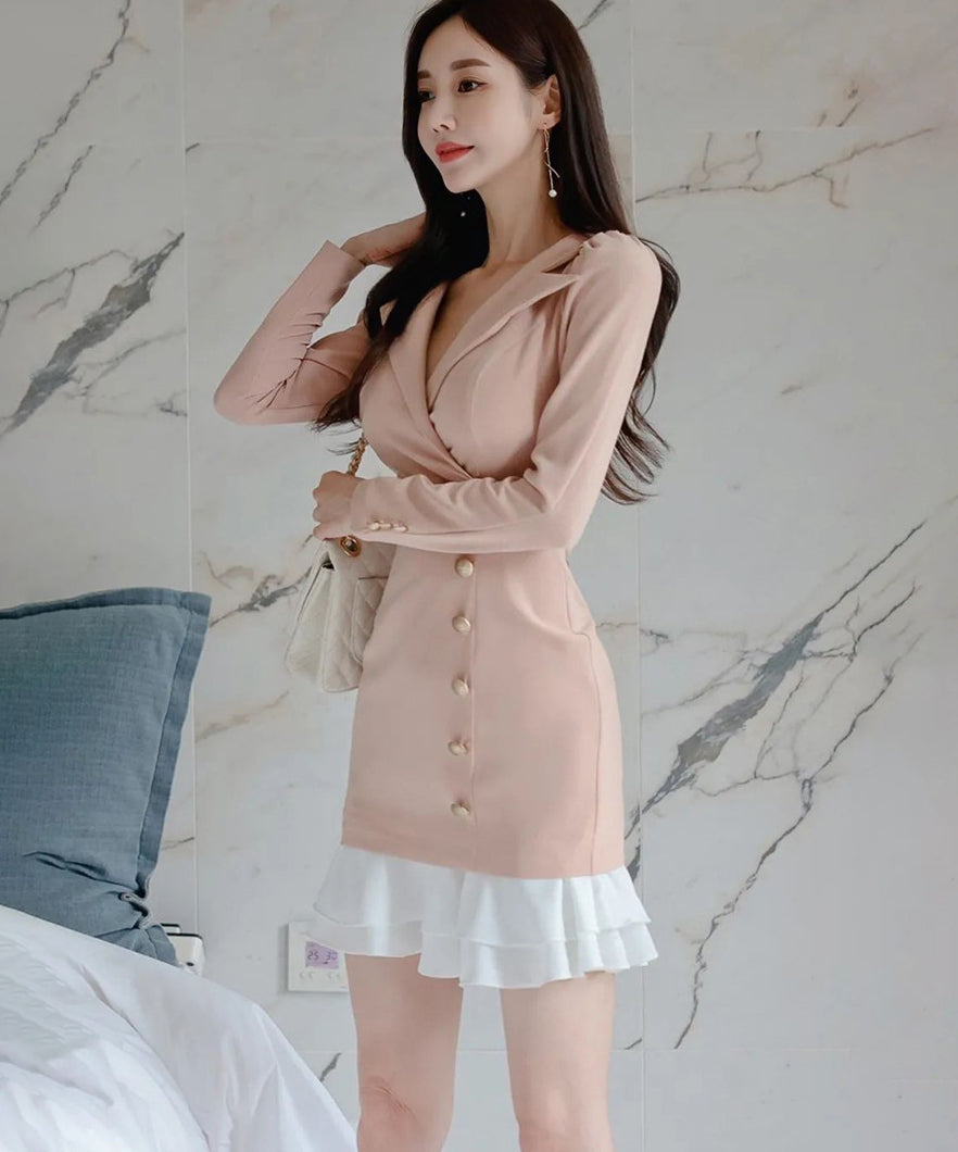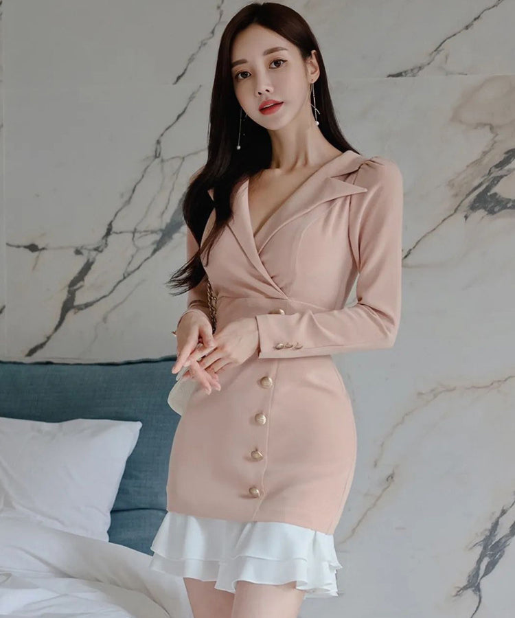 キャバドレス ミニドレス セクシー Vネック 秋新作 フリー 大人可愛い XH2-ZED882671BH506