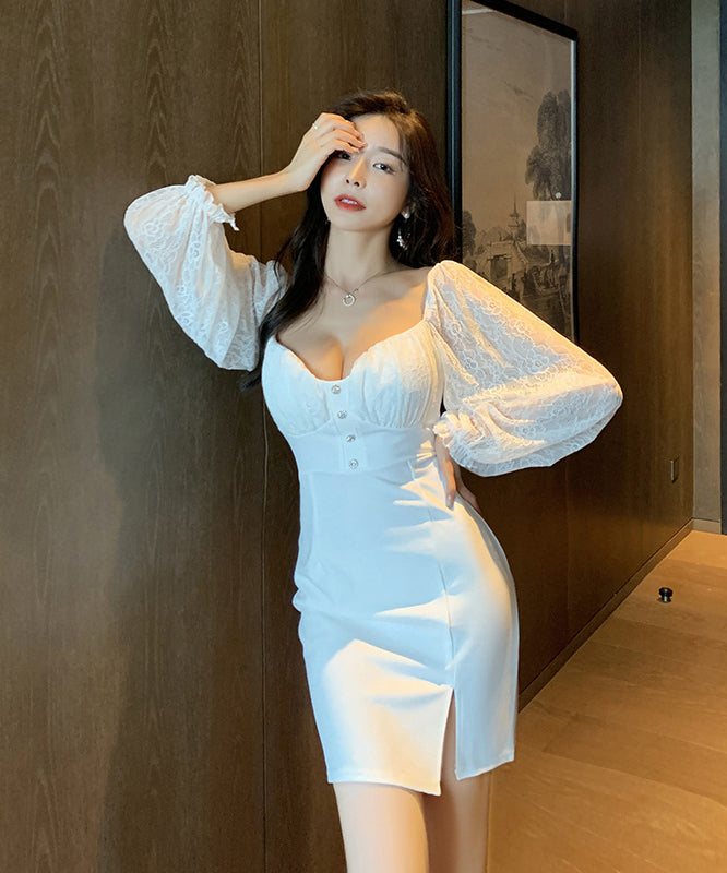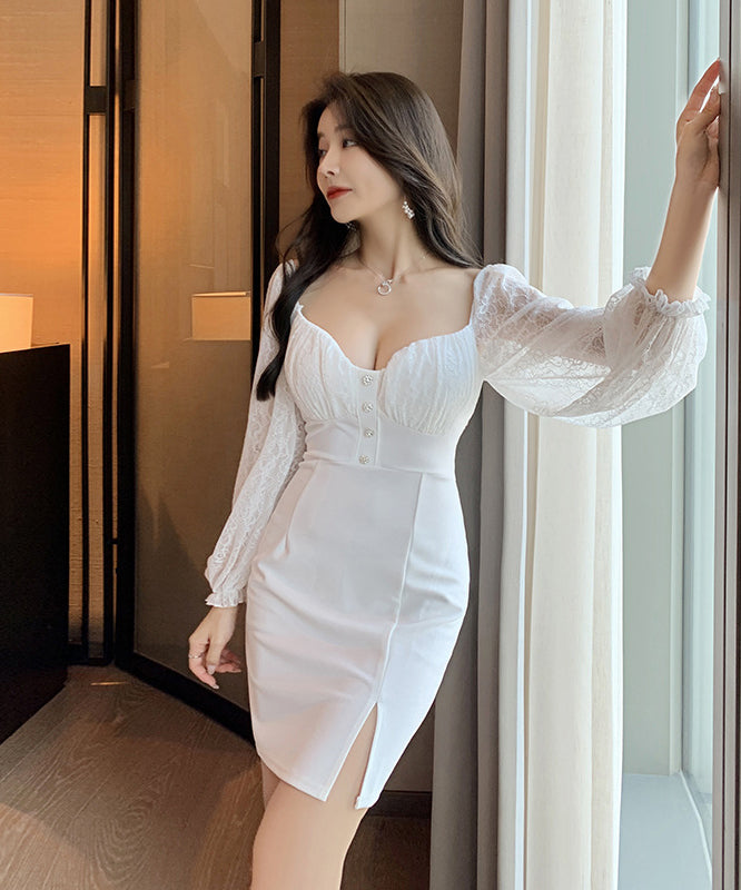 キャバドレス ミニドレス 長袖 レース 高見 女性 2色 MY2-YM8634