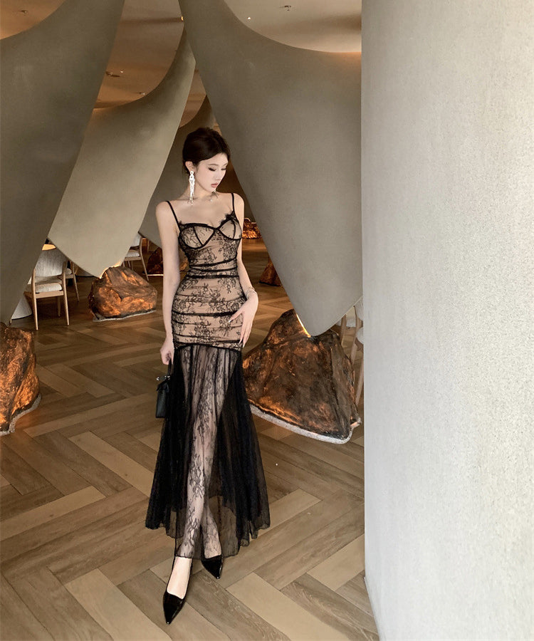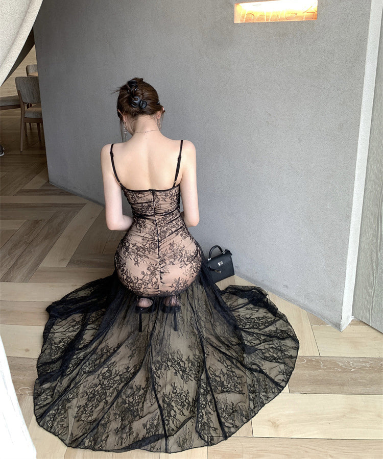キャバドレス レース セクシー 膝丈ドレス カワセクシー 指名 気質 透明感 肌見せ XH2-ZED882417DXH437