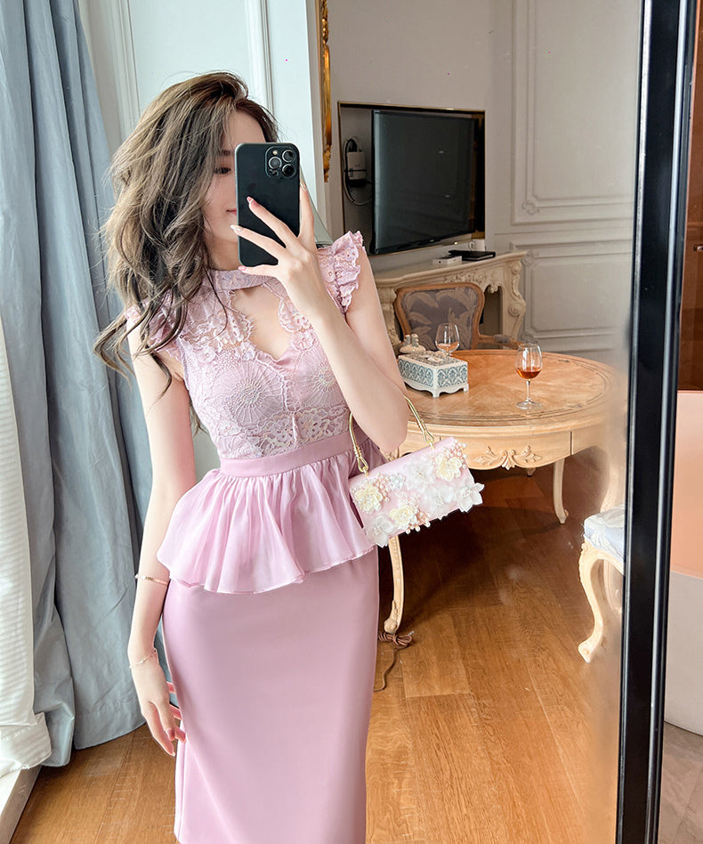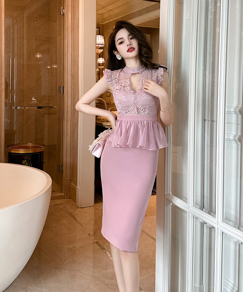 キャバドレス 膝丈ドレス セクシー 高品質 レース 手作り 結婚式 二次会 XH2-JY20377