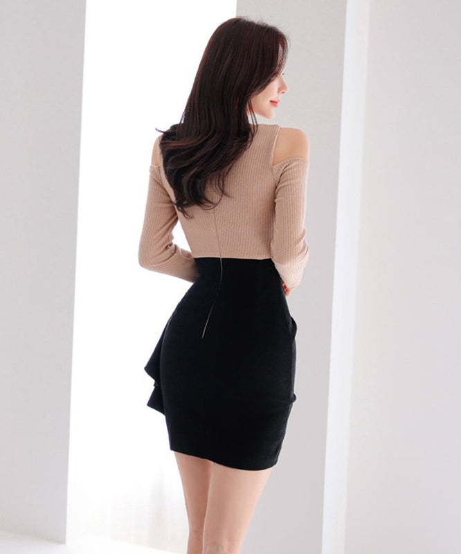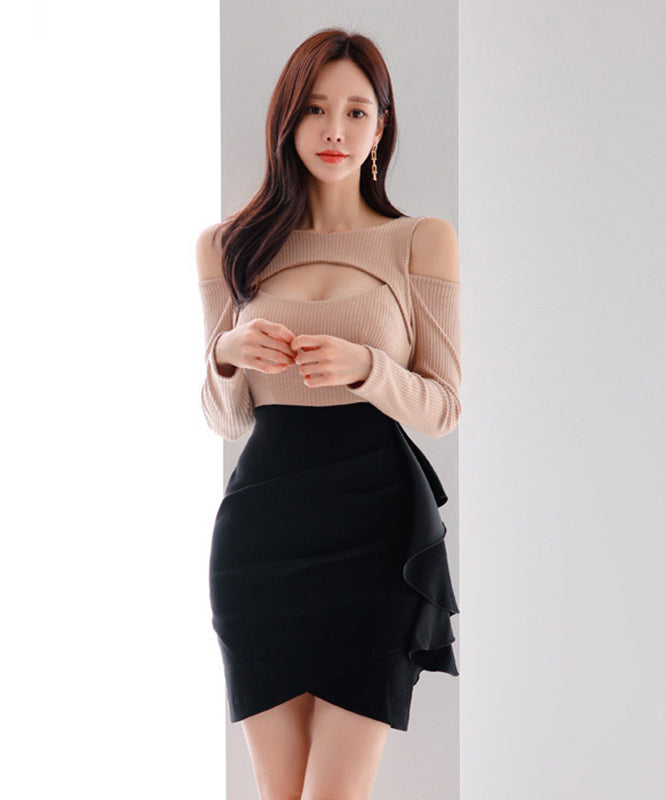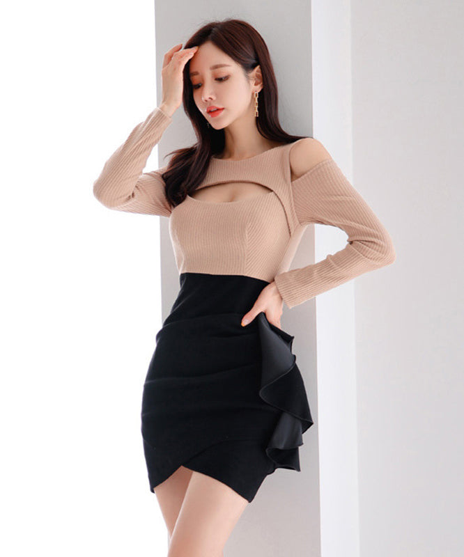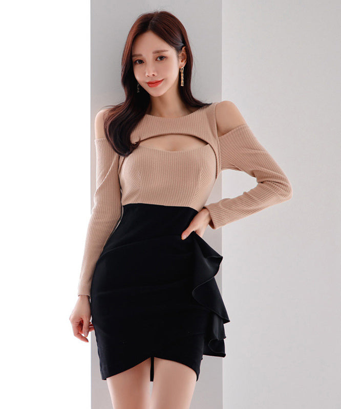 キャバドレス 谷間魅せ ミニドレス 袖付き 同伴 セクシー XH2-ZED887921A71