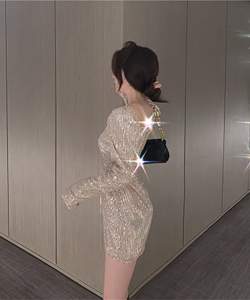 キラキラ キャバドレス 秋新作 ナイトクラブ Party 指名 肌見せ ピカピカ ゴージャス XH2-LQE2010K55