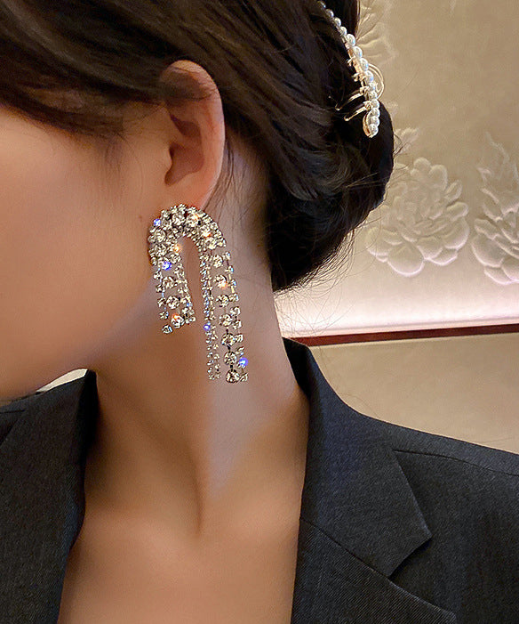 キラキラ ダイヤモンド イアリング 個性 おしゃれ フリンジ XH3-BY-HE3995