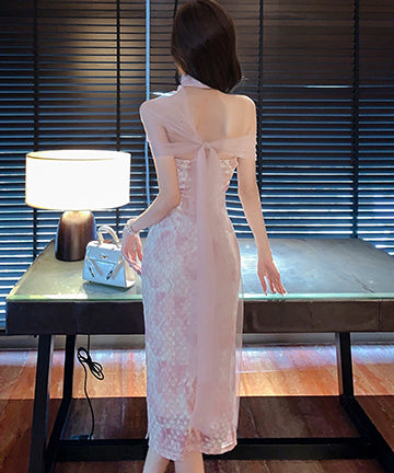 キラキラ チュール ロングドレス 高見え リボン 二次会 LT2-LQE8318MR418