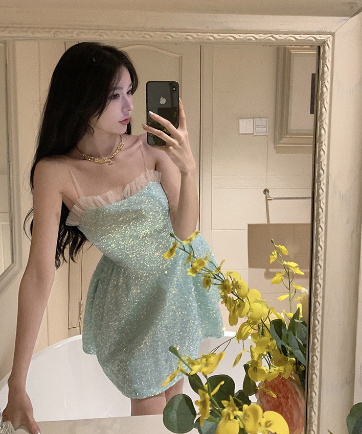 キラキラ ミニドレス キャバドレス セクシー ベアトップ Party お姫様 XH2-LQE5352H449