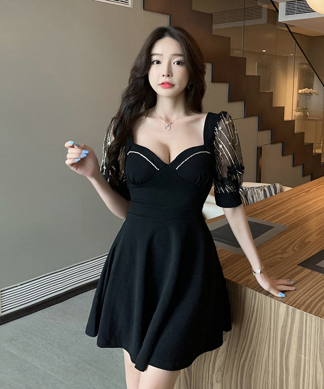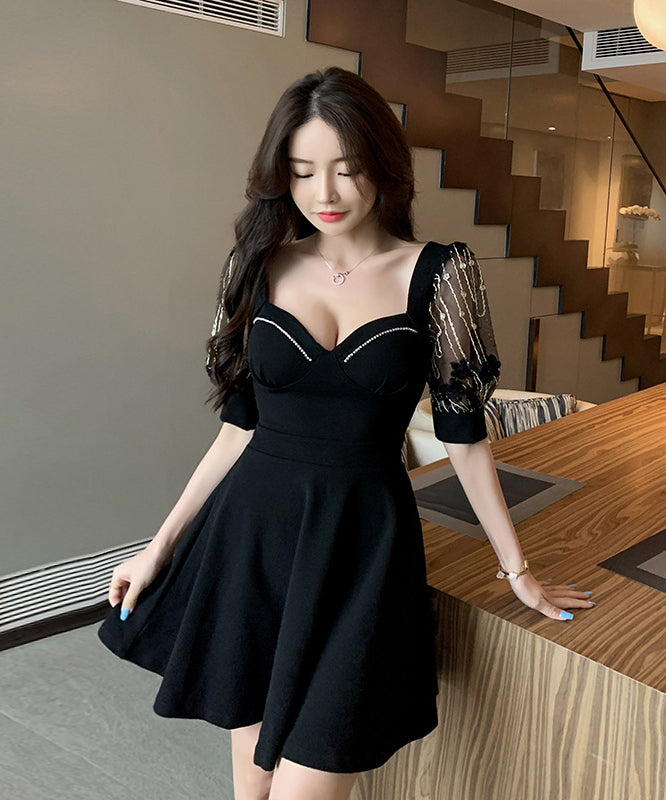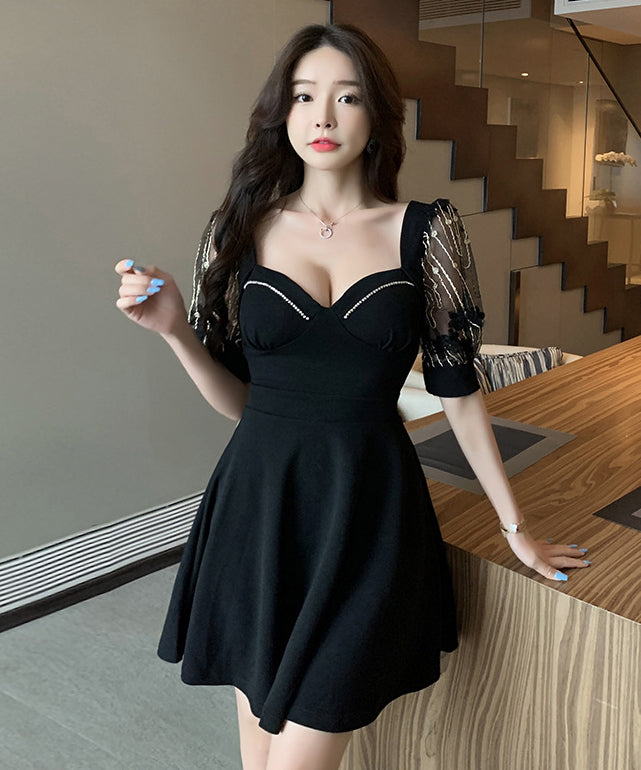 キラキラ ミニドレス キャバドレス 刺繡 かわいい Vネック 谷間魅せ 新作 MY2-YM8659