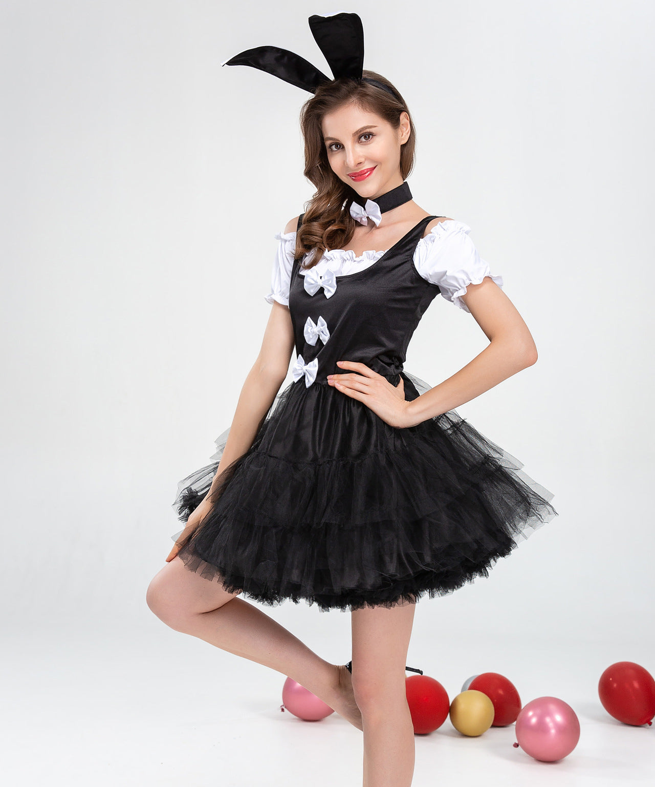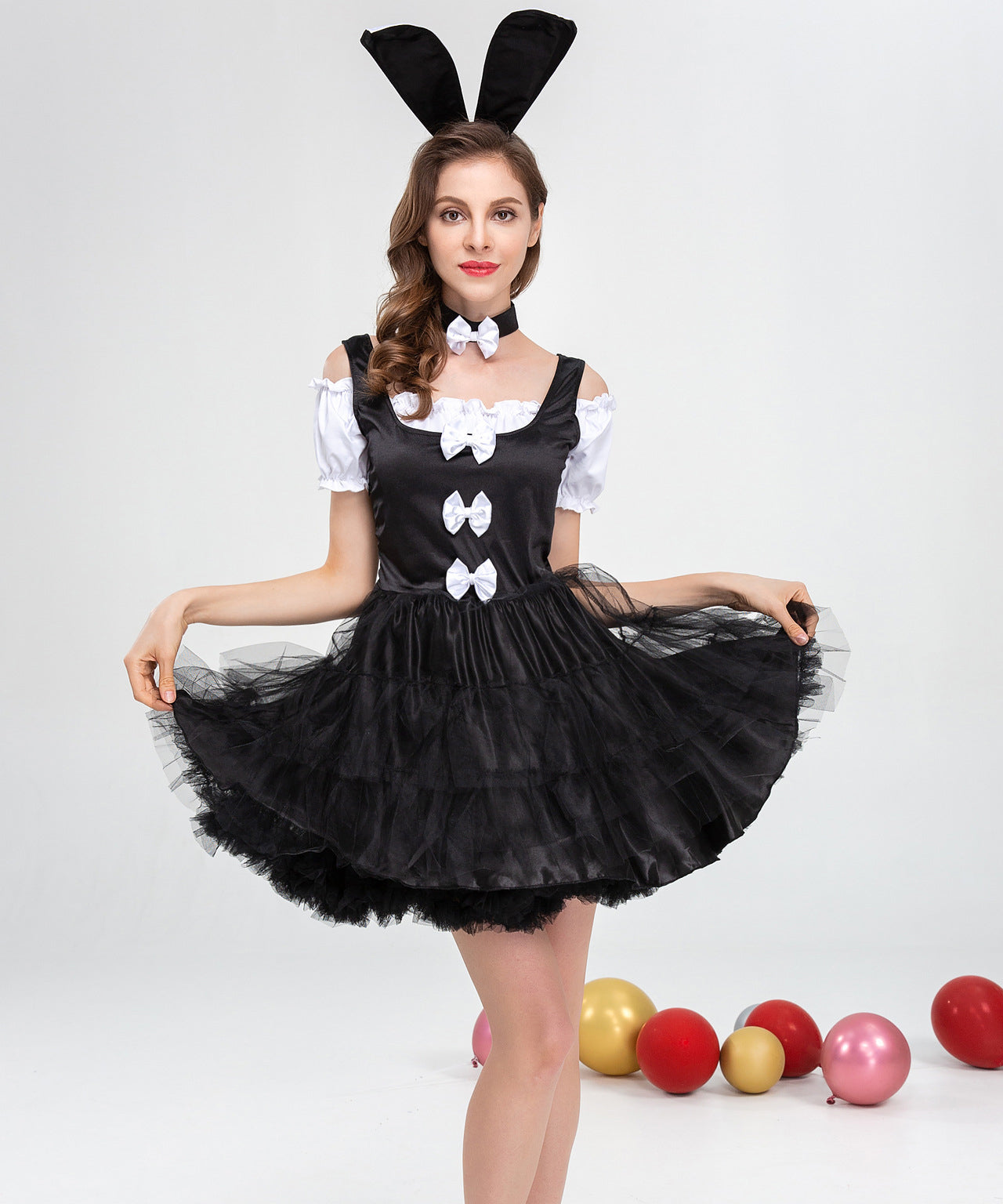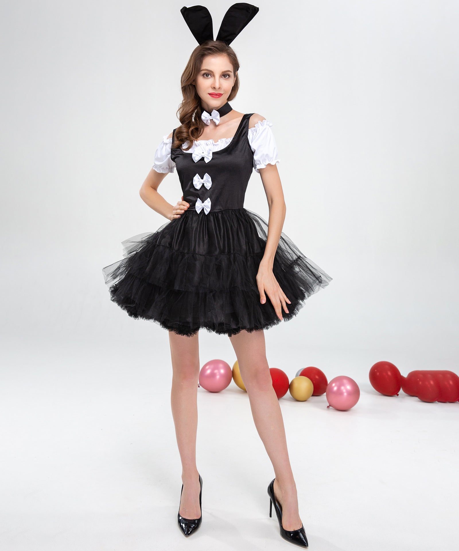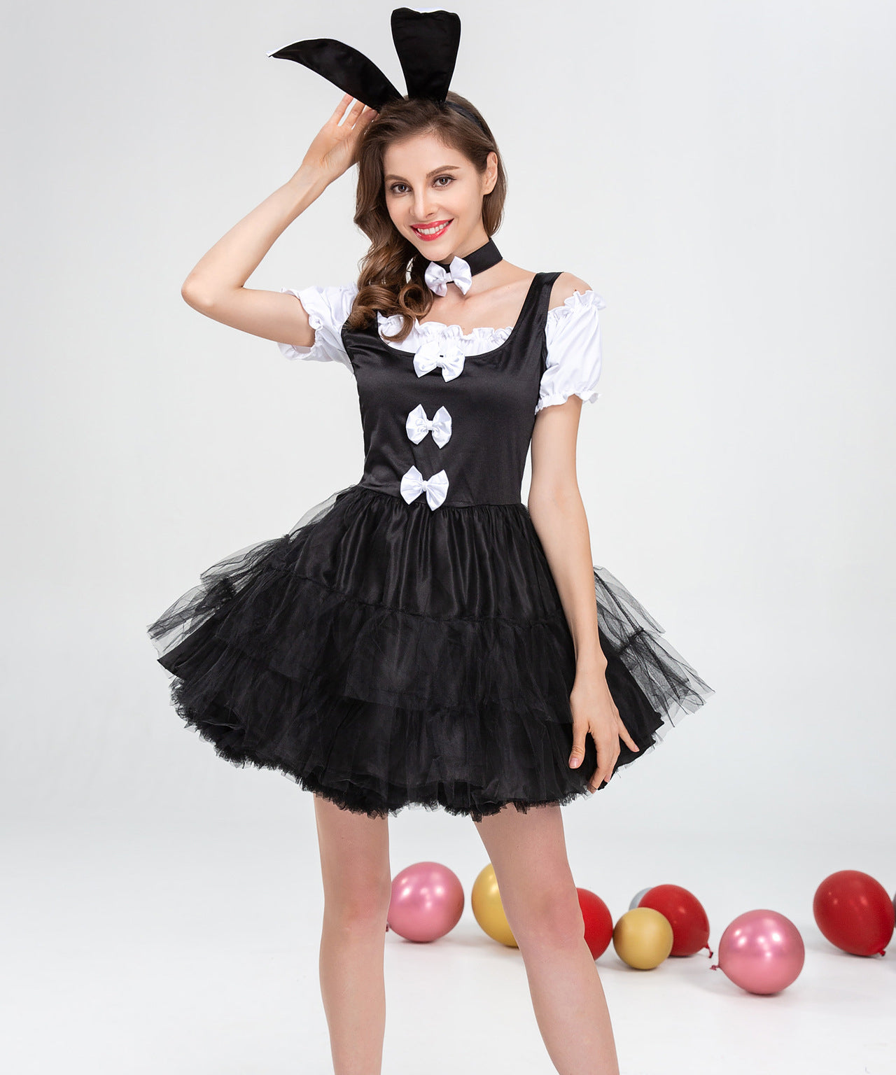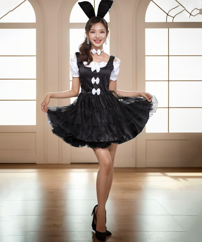 【コスプレ3点セット】メイド 体型カバー フレアスカートデザイン ペアガーリー バニーガール XH2-KQT8672