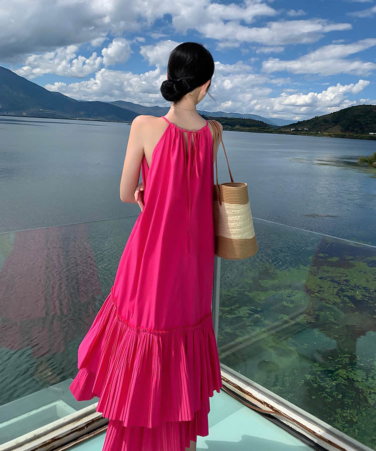 サンドレスロングドレス着痩せ気質フリル大人可愛い旅行ビーチSNS話題体型カバー WQ2-CD6-CF12-51150580
