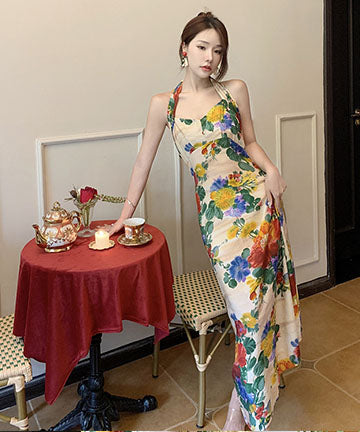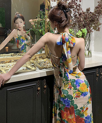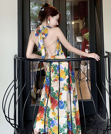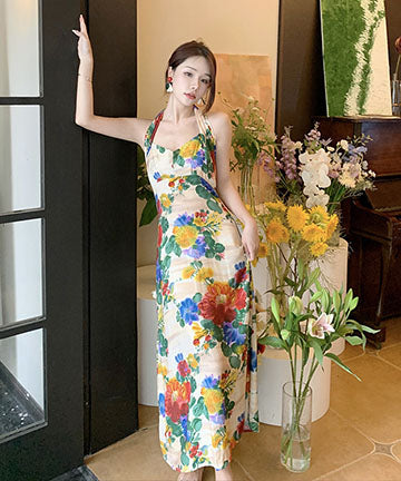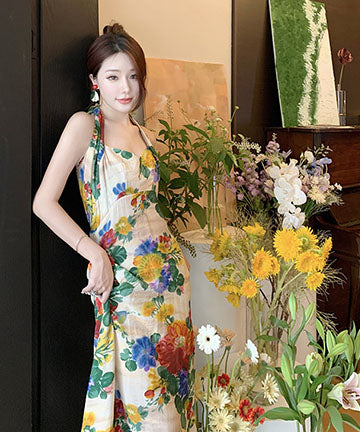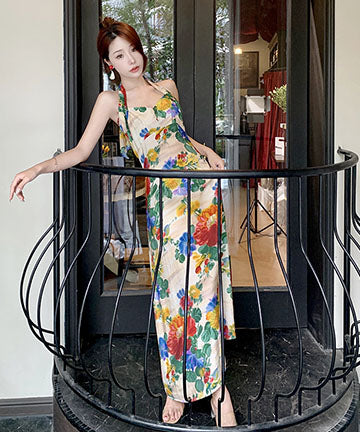 サンドレス ロングドレス 花柄 ロマンチック 海辺花火 仙女風 LT2-QJ6793
