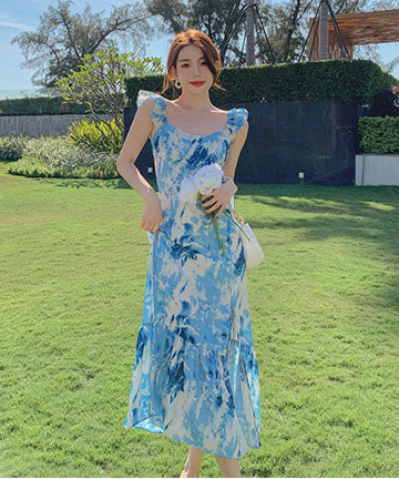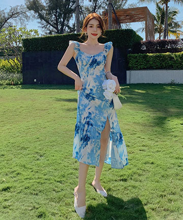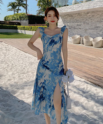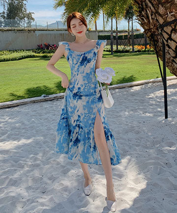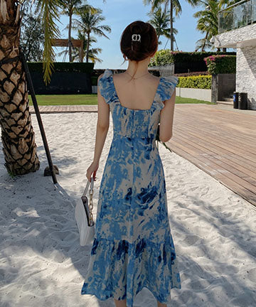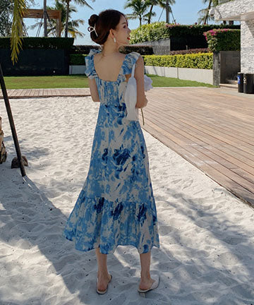 サンドレス ロングドレス 花柄 旅行 海辺花火 仙女風 LT2-XDE281-A