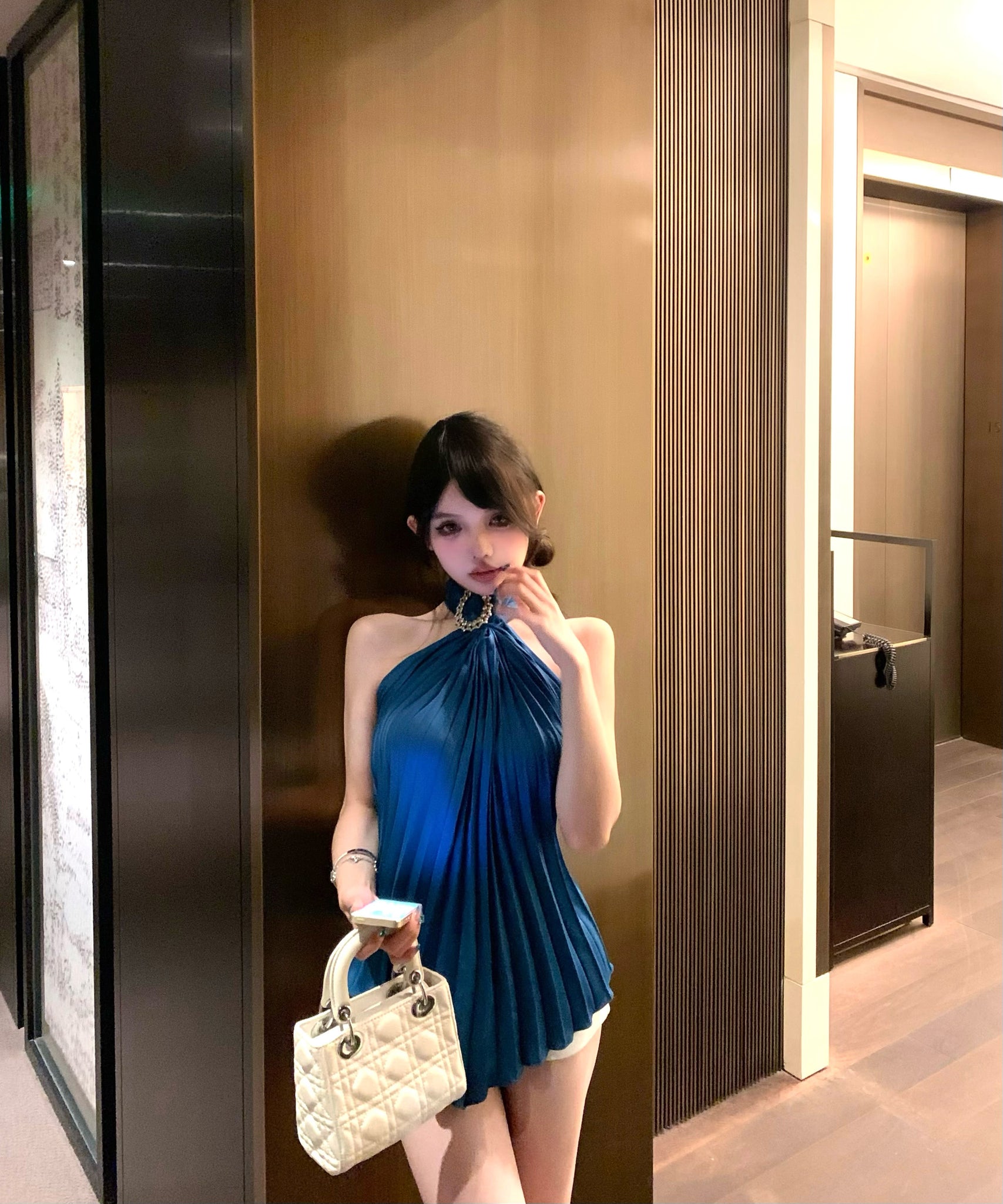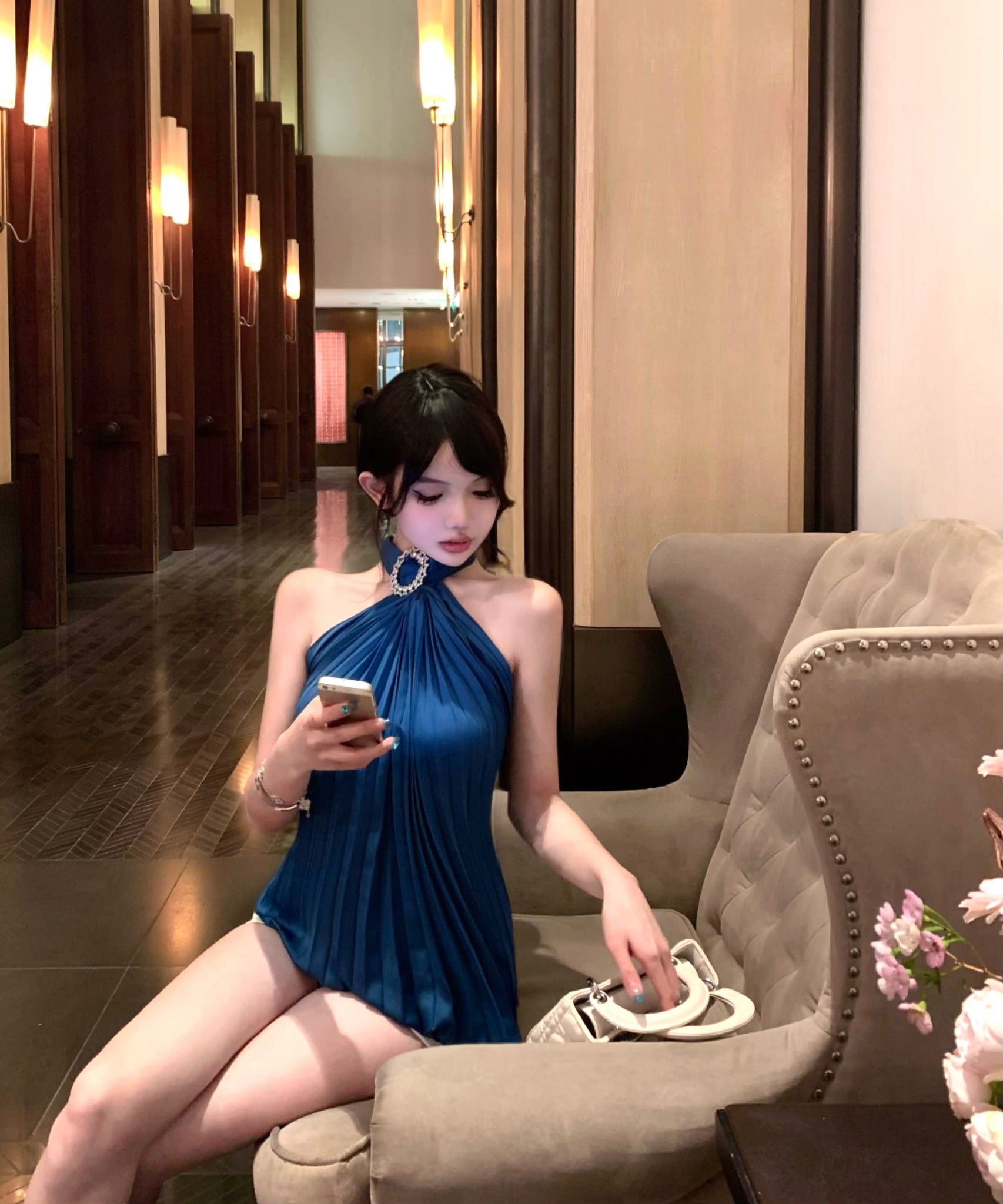 シャツホルターネックセクシーエレガント宴会パーティーセレブ風キラキラバックレス気質 WQ2-MXX3643