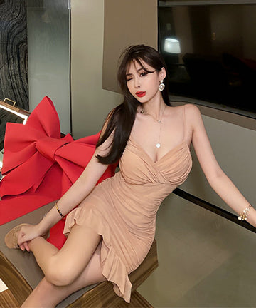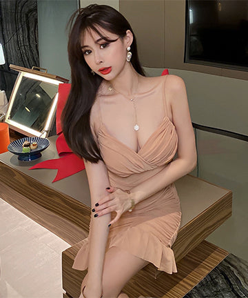 セクシー キャバドレス 可愛い 谷間魅せ フリル ナイトクラブ おしゃれ XH2-LQE285