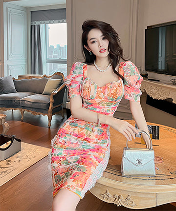 タイトミニドレス プリーツ 花柄 セクシー おしゃれ 宴会 XH2-JY10140