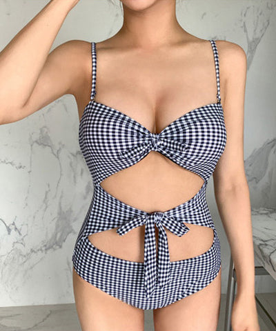チェック柄 ビキニ セクシー 水着 リボン 大人可愛い 温泉 旅行 XH7-KSD2316