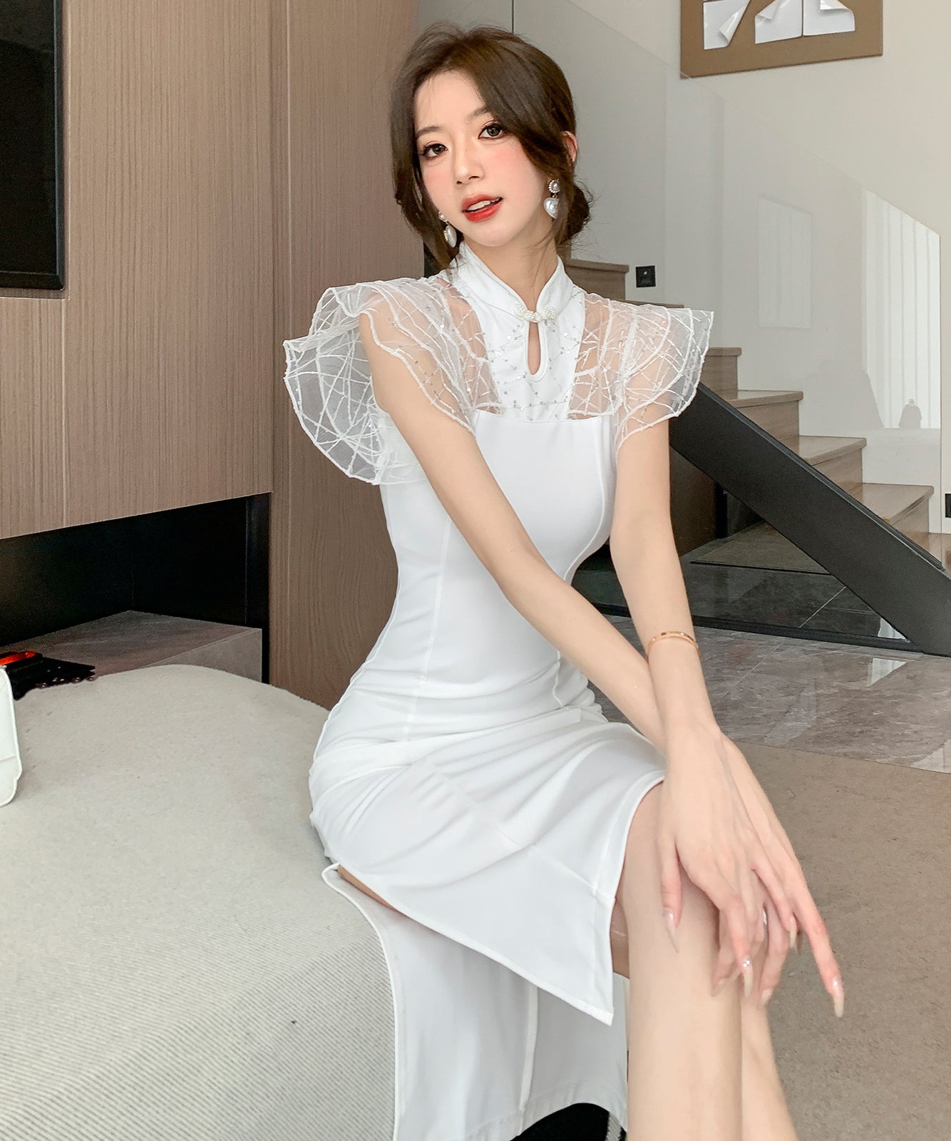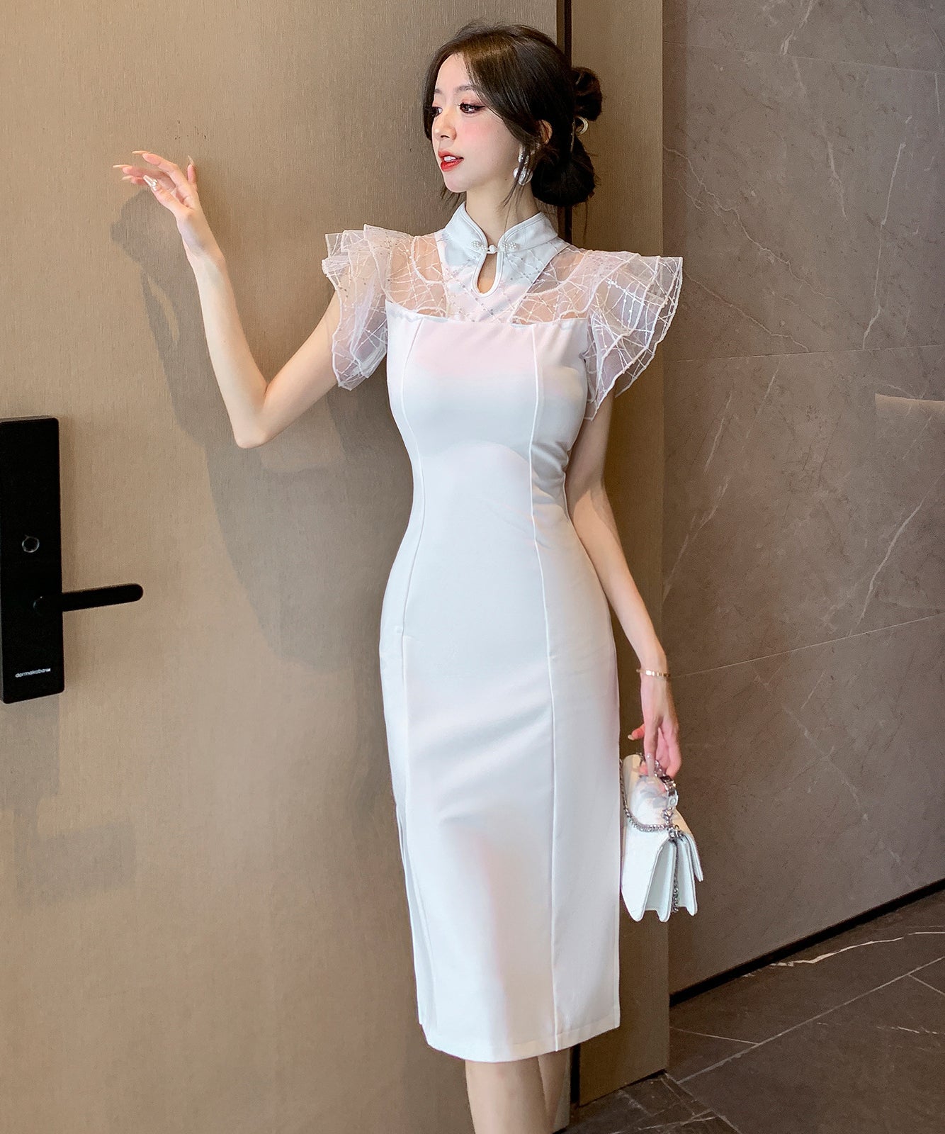 チャイナドレス 膝丈ドレス fashion レース セクシー 宴会 YH2-DD6027