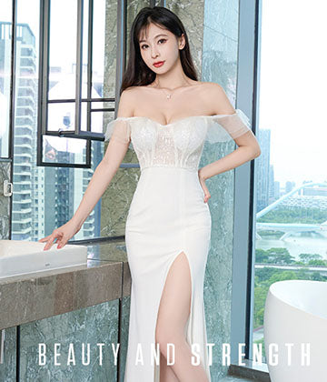 チューブトップ ロングドレス キャバドレス 透視感 谷間魅せ セクシー 高級感 LT2-XYD2255
