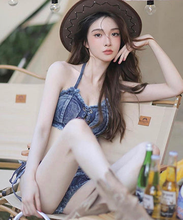 デニムビキニ セクシー 超人気 ホルターネック ストレッチ アップバンド XH7-OS001